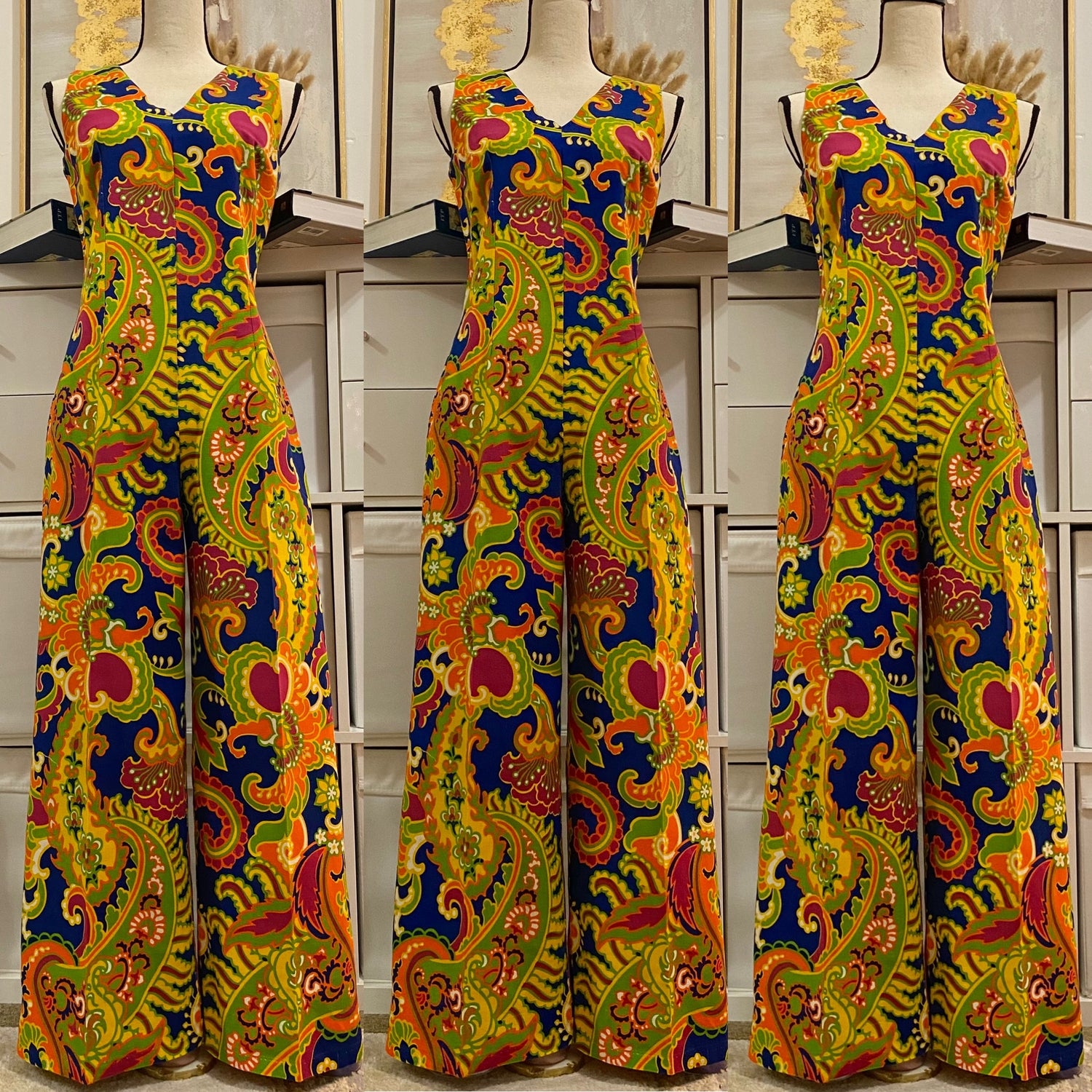 60’s-70’s Psychedelic Sleeveless Bell Bottom Jumpsuit (M-L)