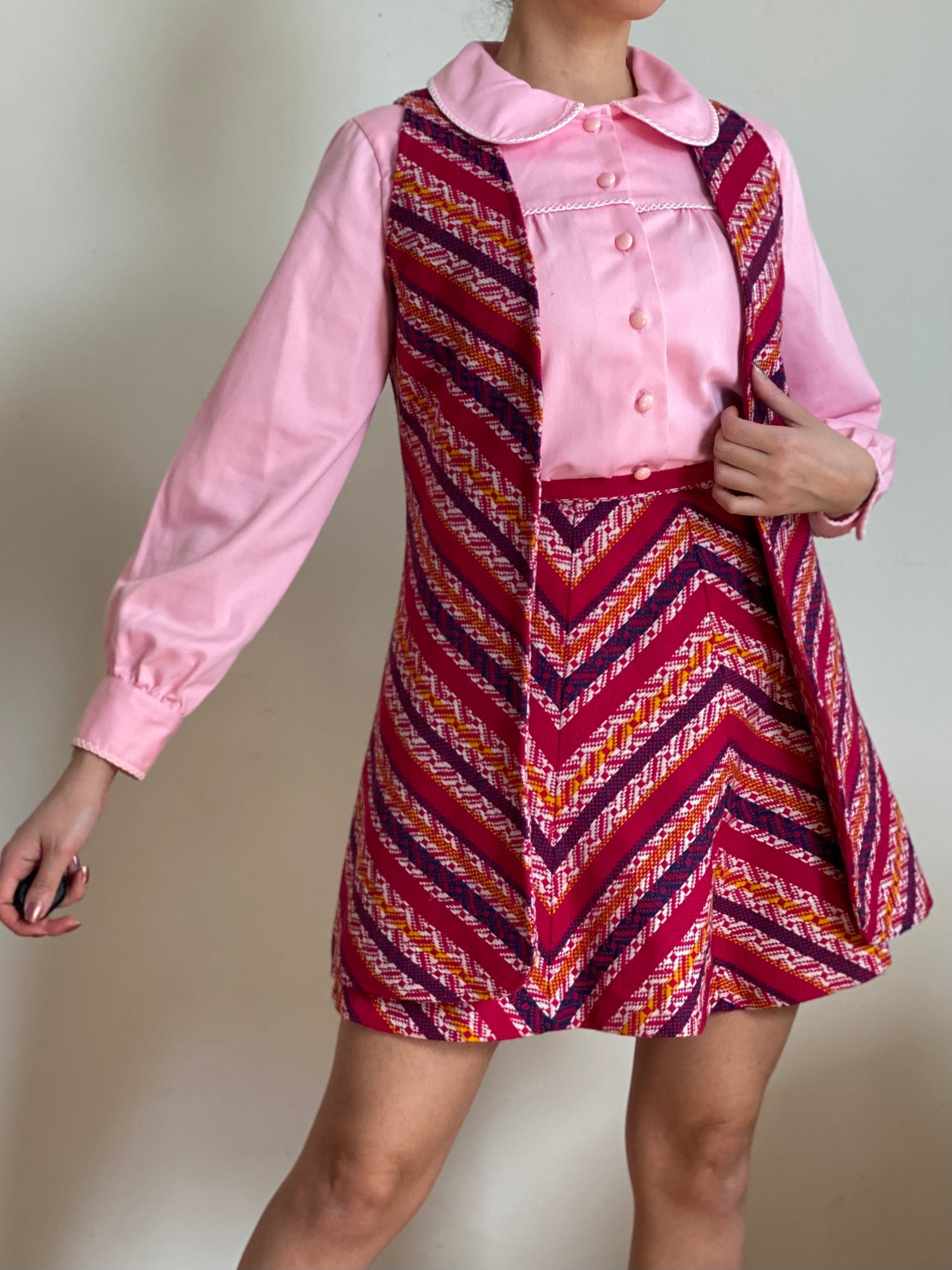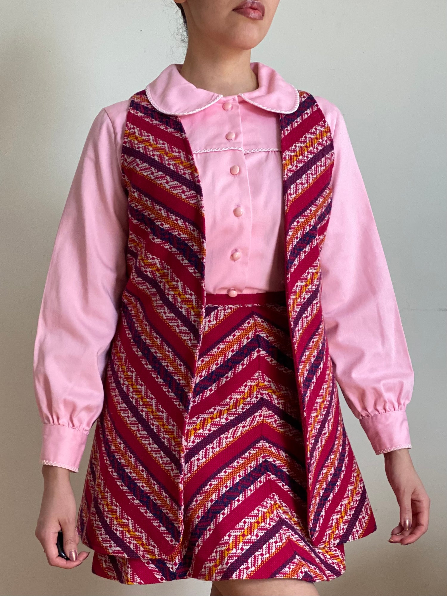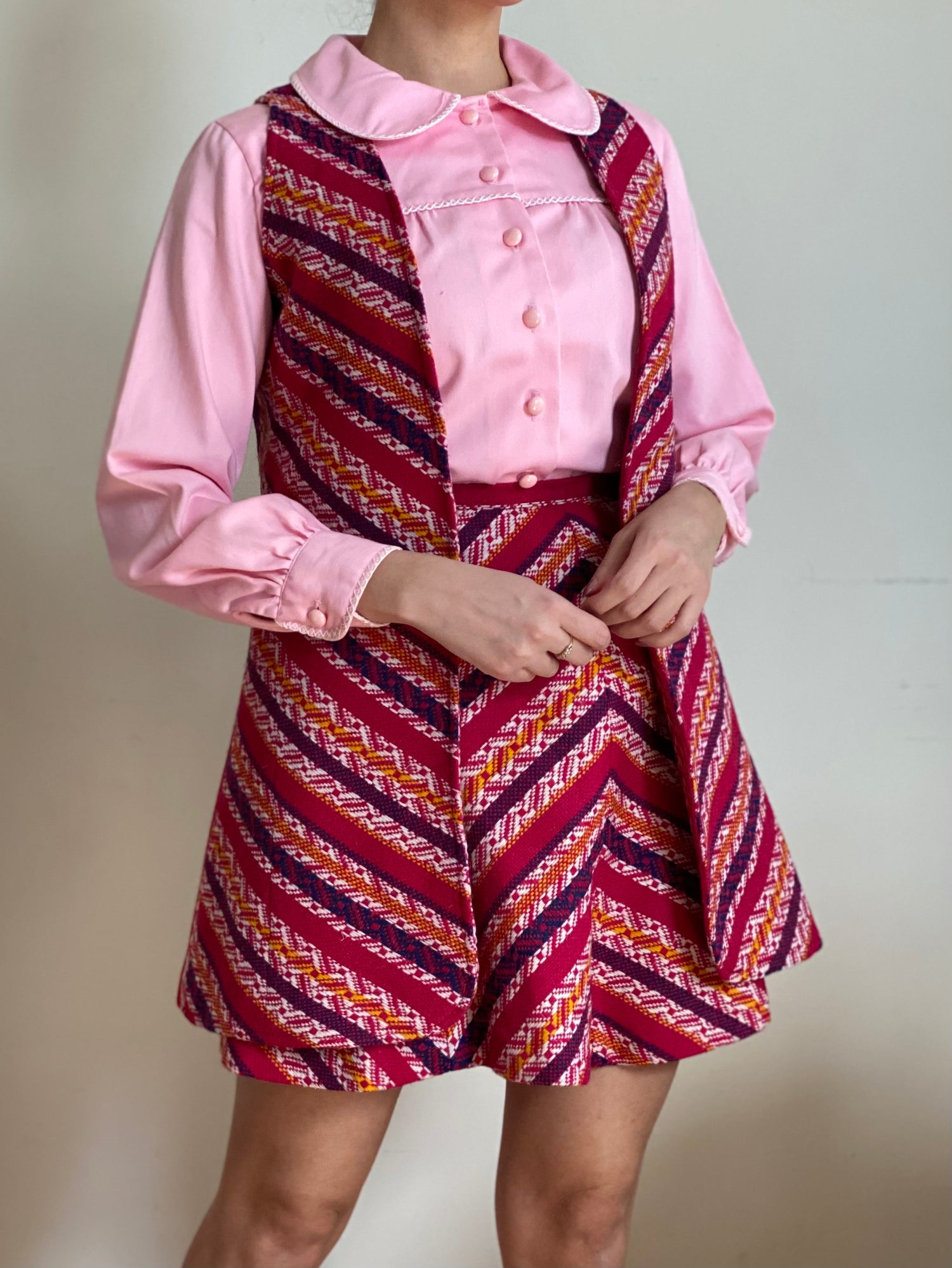 70's Bubblegum Pink Peter Pan Collar Puffy Sleeve Blouse (S-M)