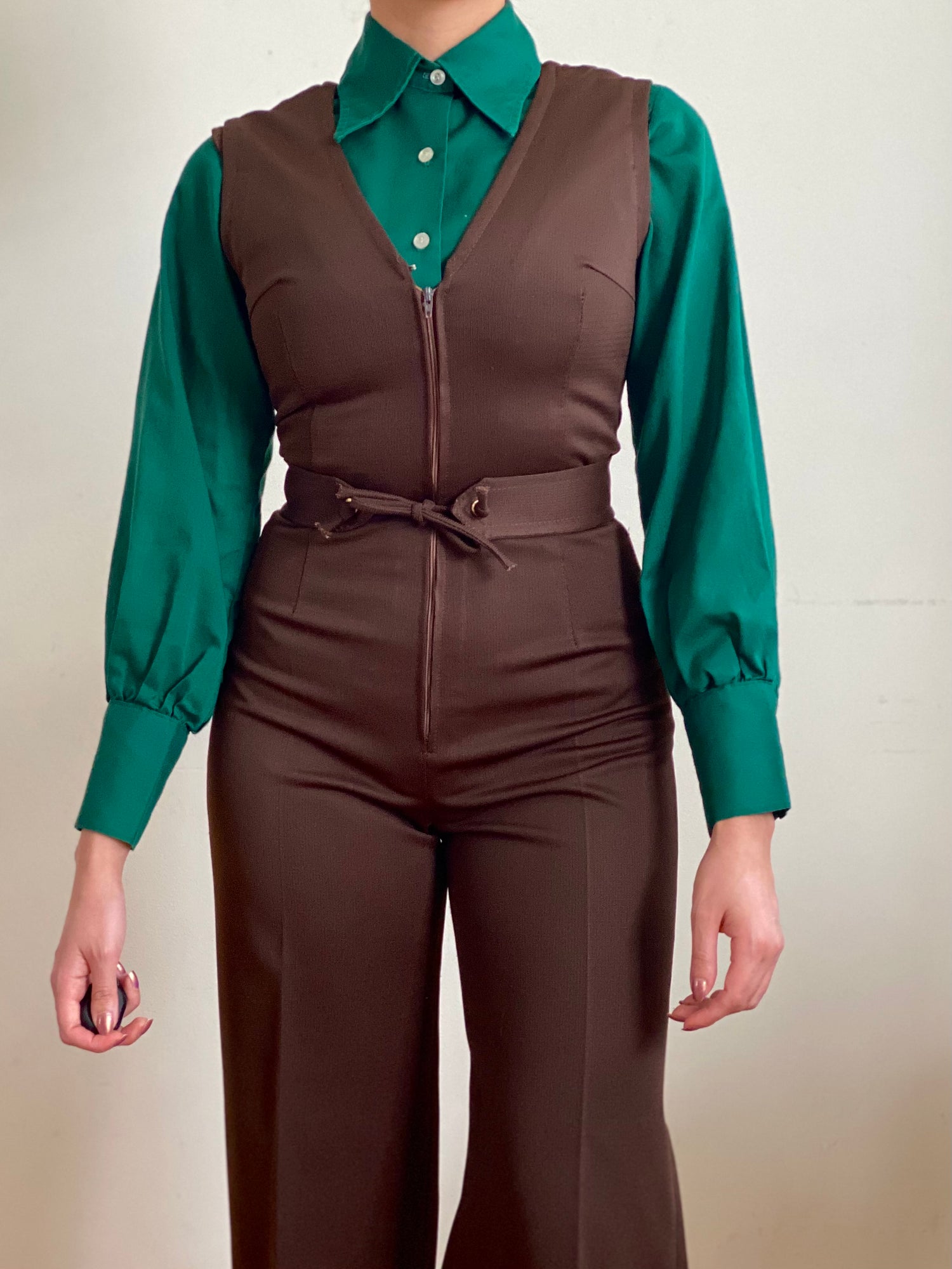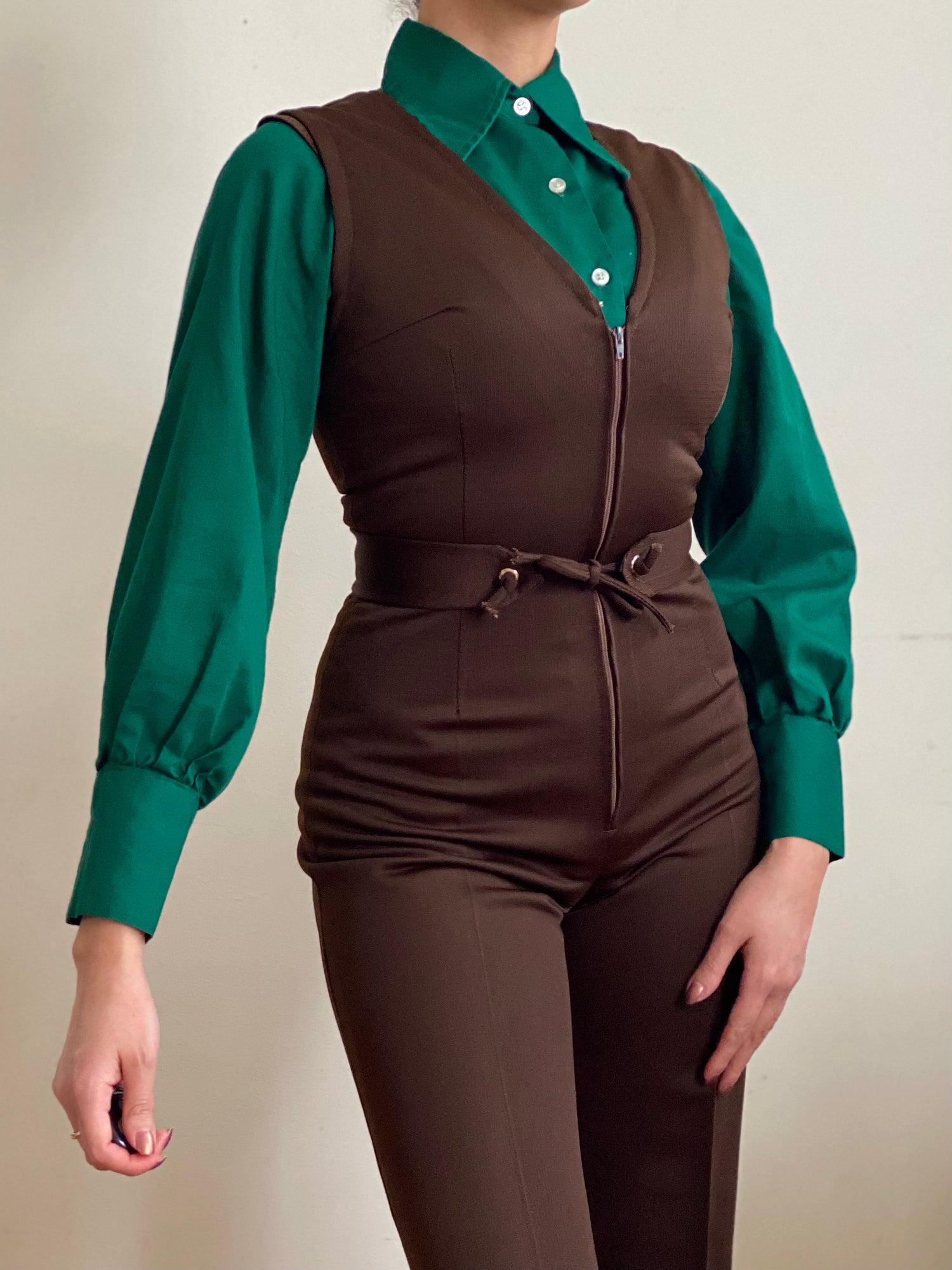 Details: Forest Green Bishop Sleeve Pointy Collar Blouse, button down style.