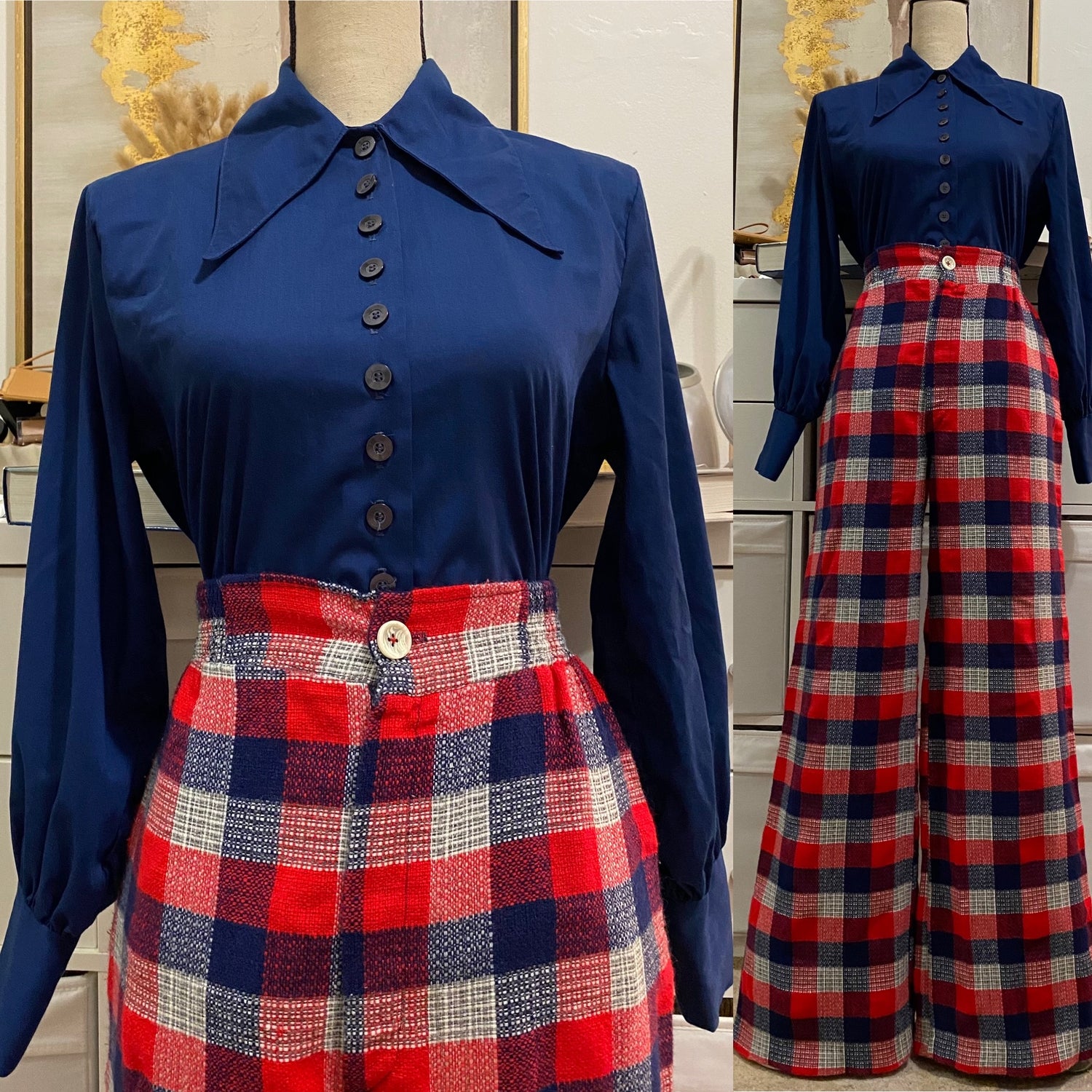 Paired with our 60s-70s checkered/plaid, wide leg pants.