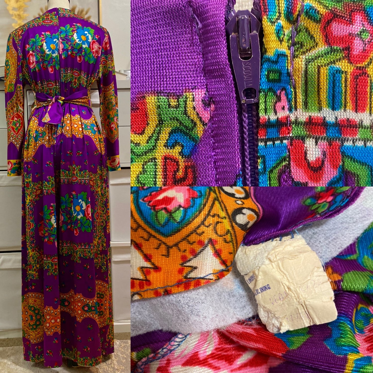 60s-70s Purple Psychedelic Palazzo Jumpsuit - (S-L)
