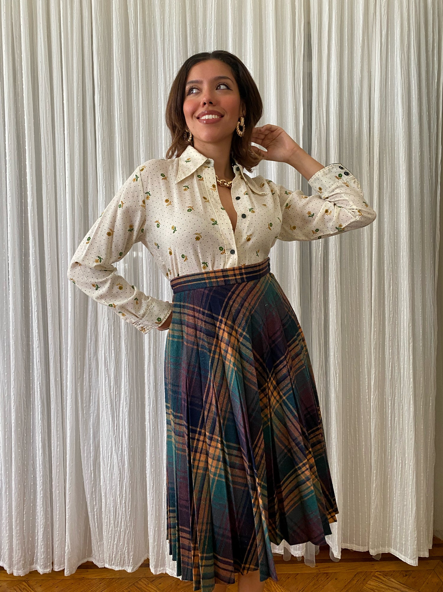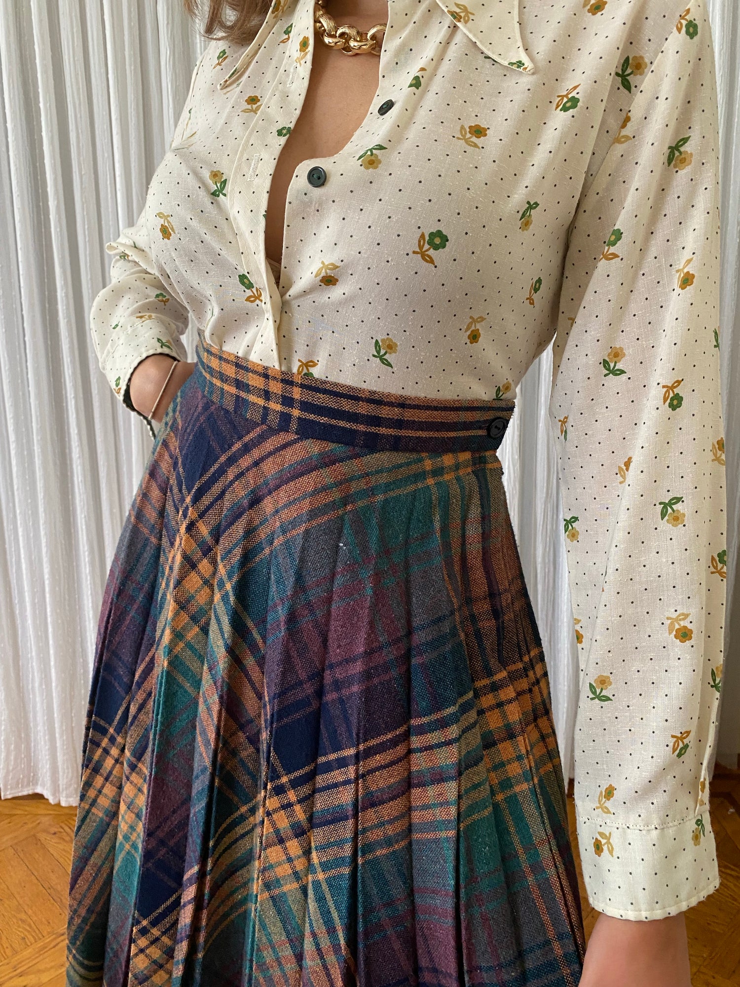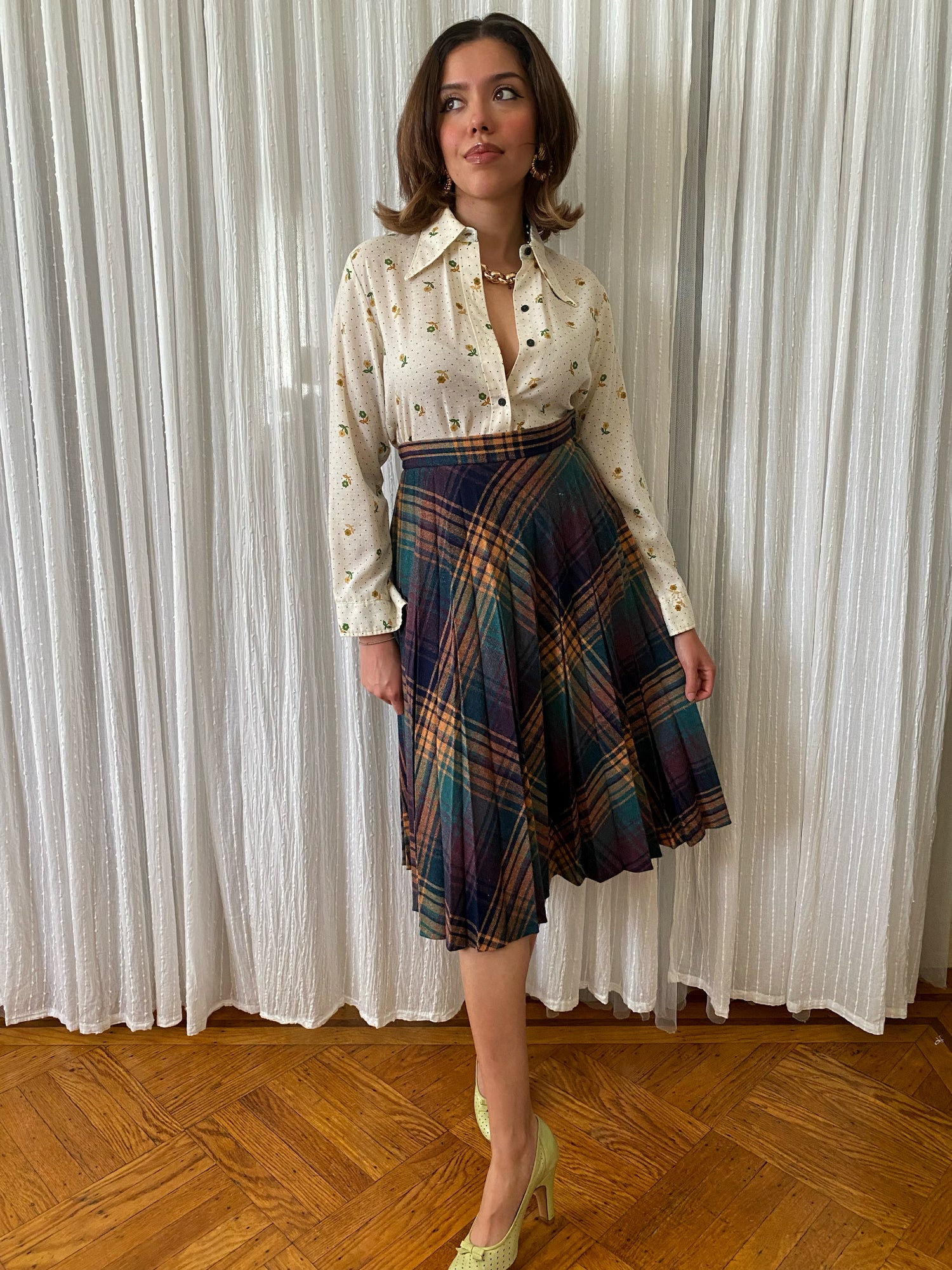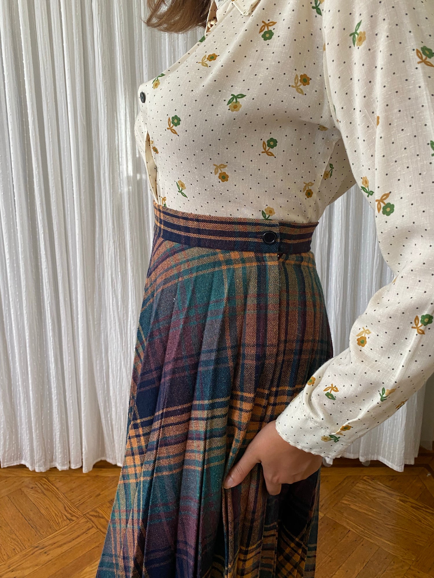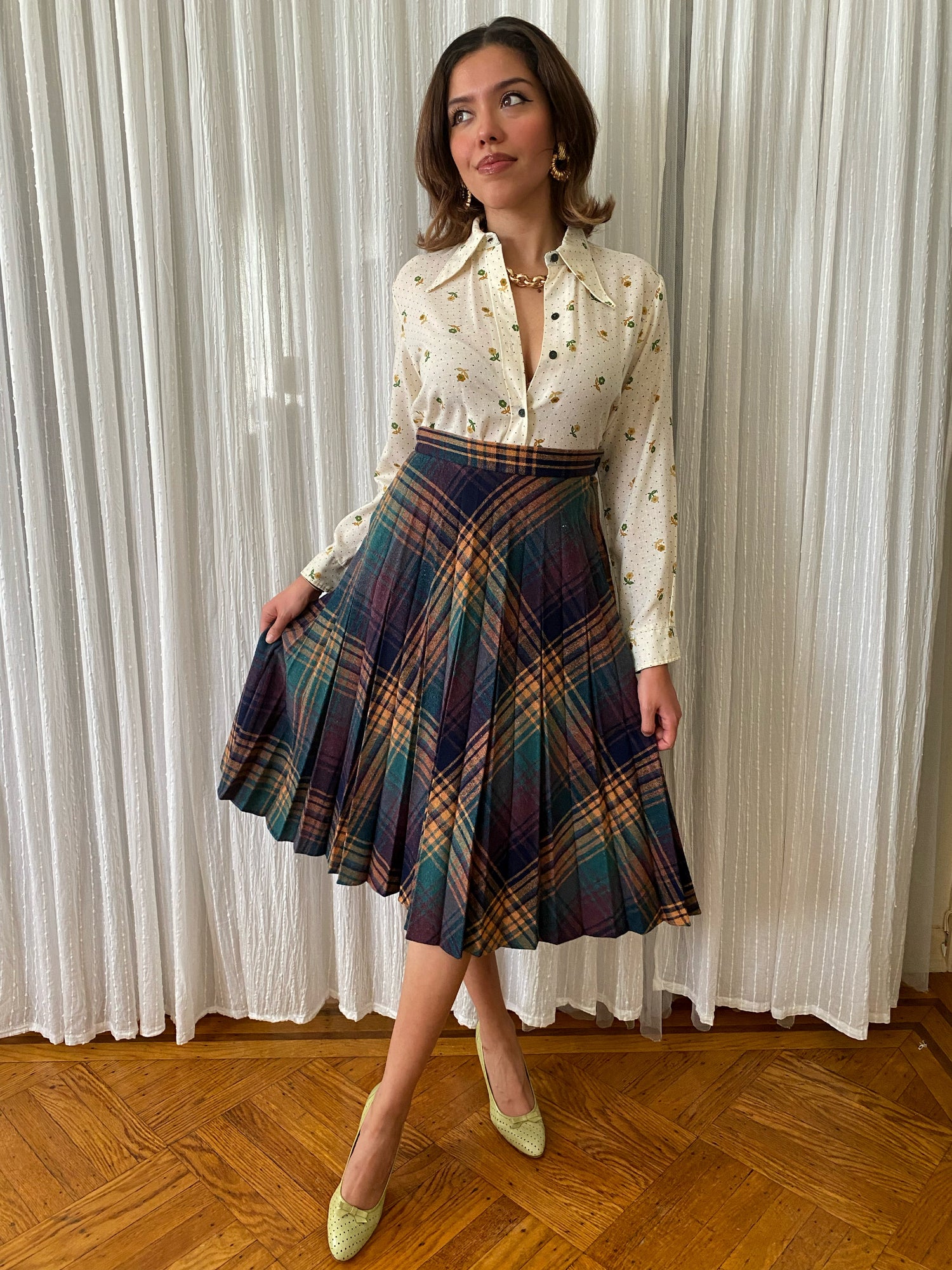 - Features: Union Made, plaid checkered pattern, pleated, single button closure with functional zipper.