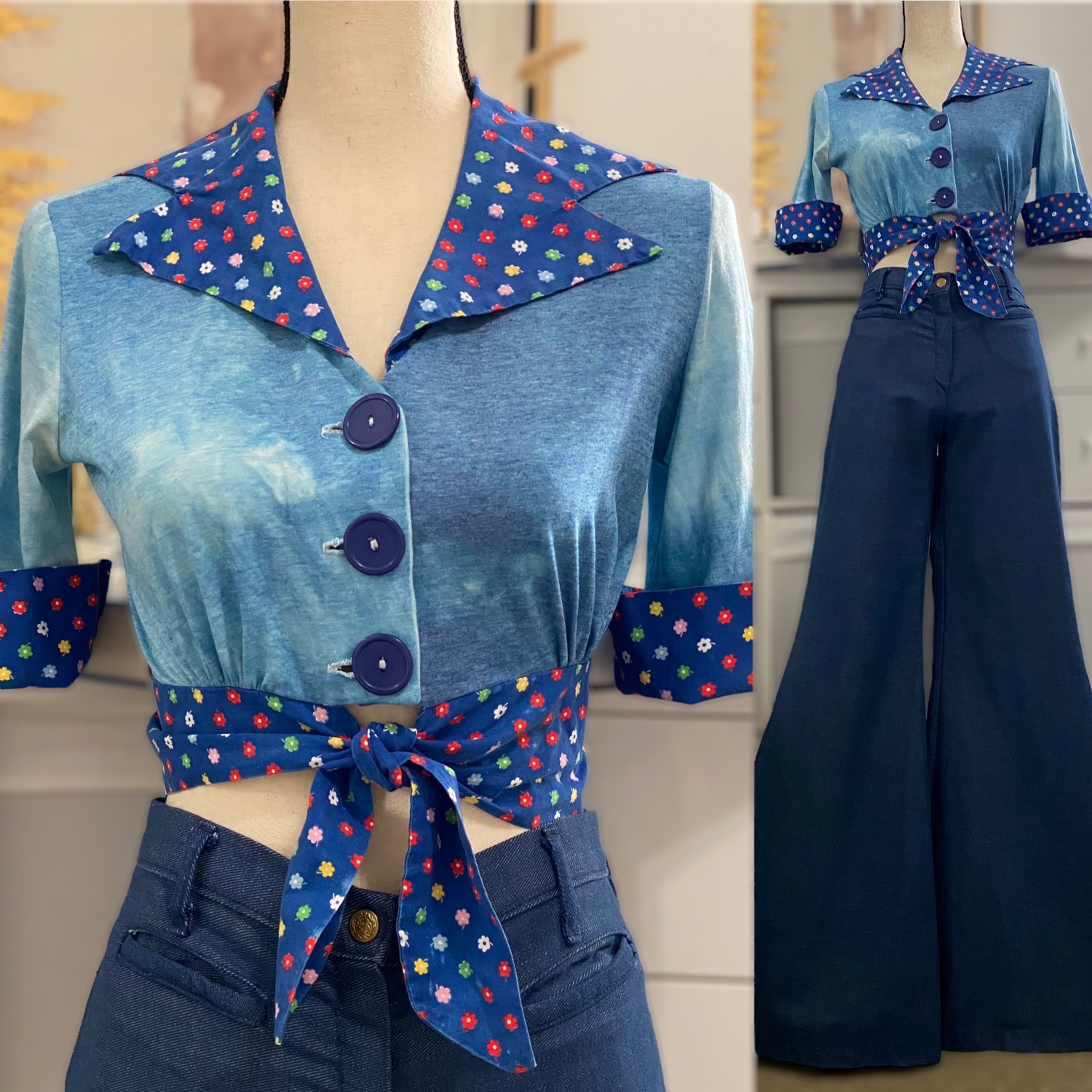 Adorable 1970s tie-dye front tie crop top.