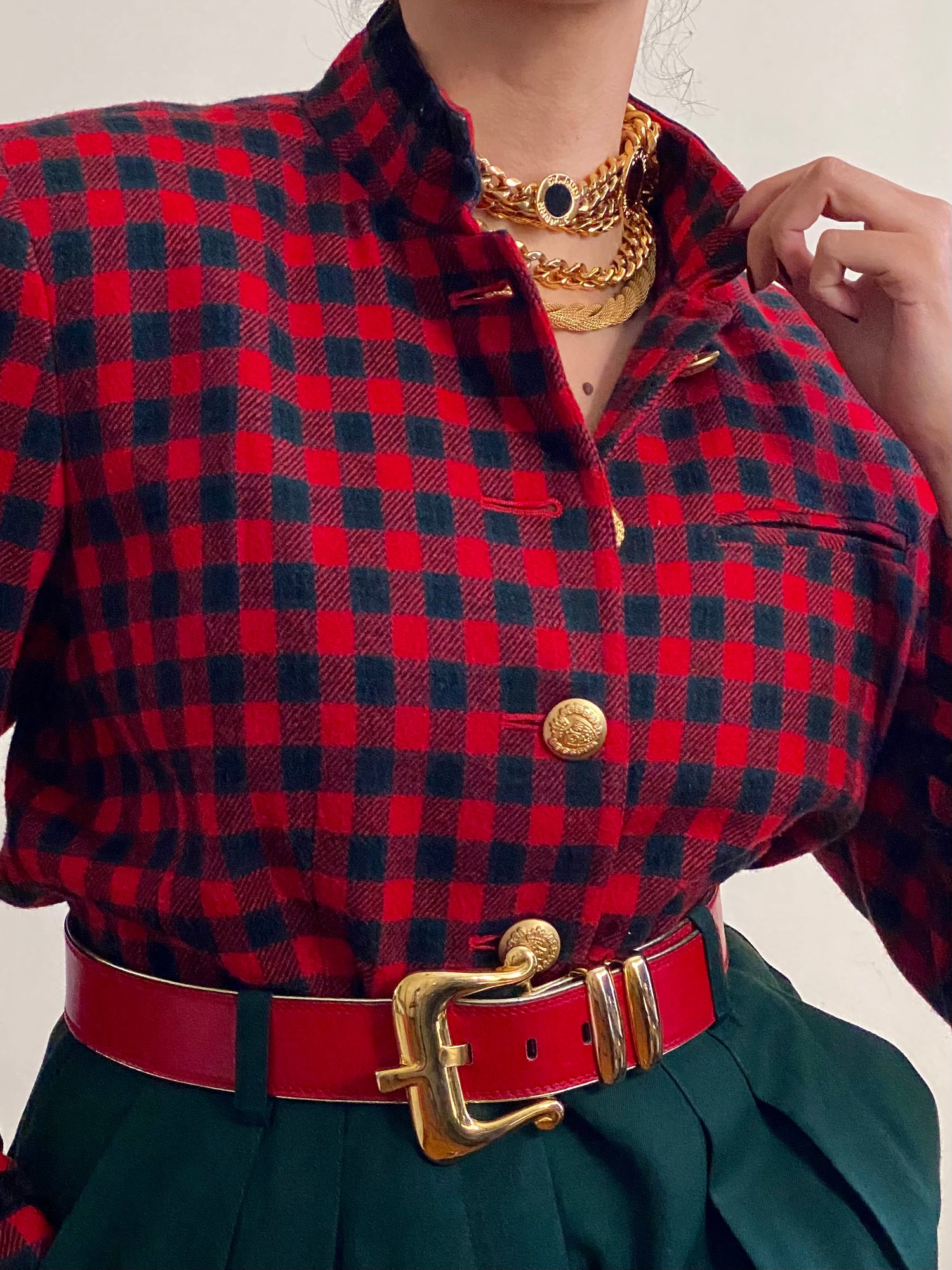 90's Buffalo Plaid Military Style Wool Blazer Jacket (S)
