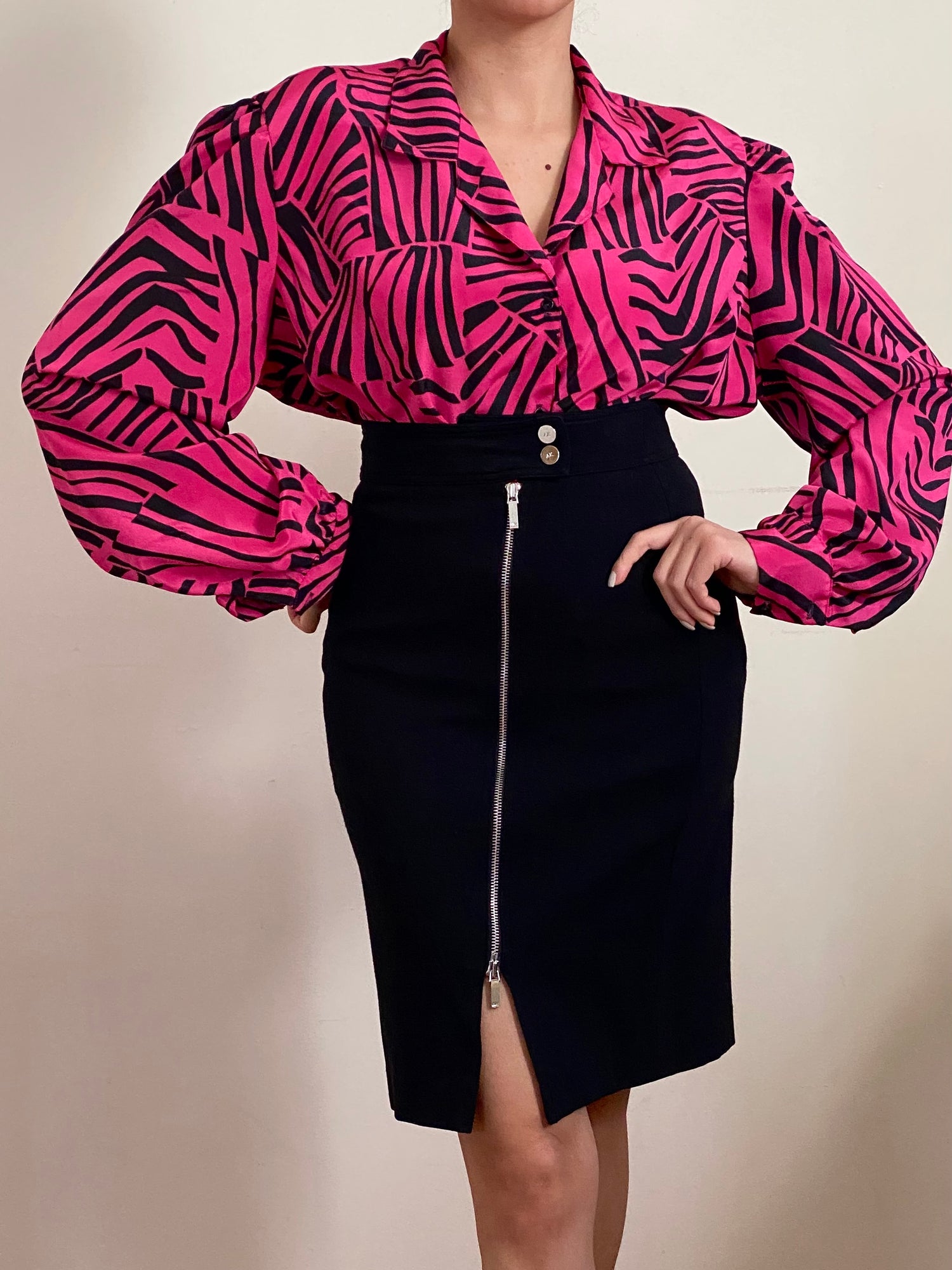 80's Fuchsia Tiger Print Oversized Blouse (XL)