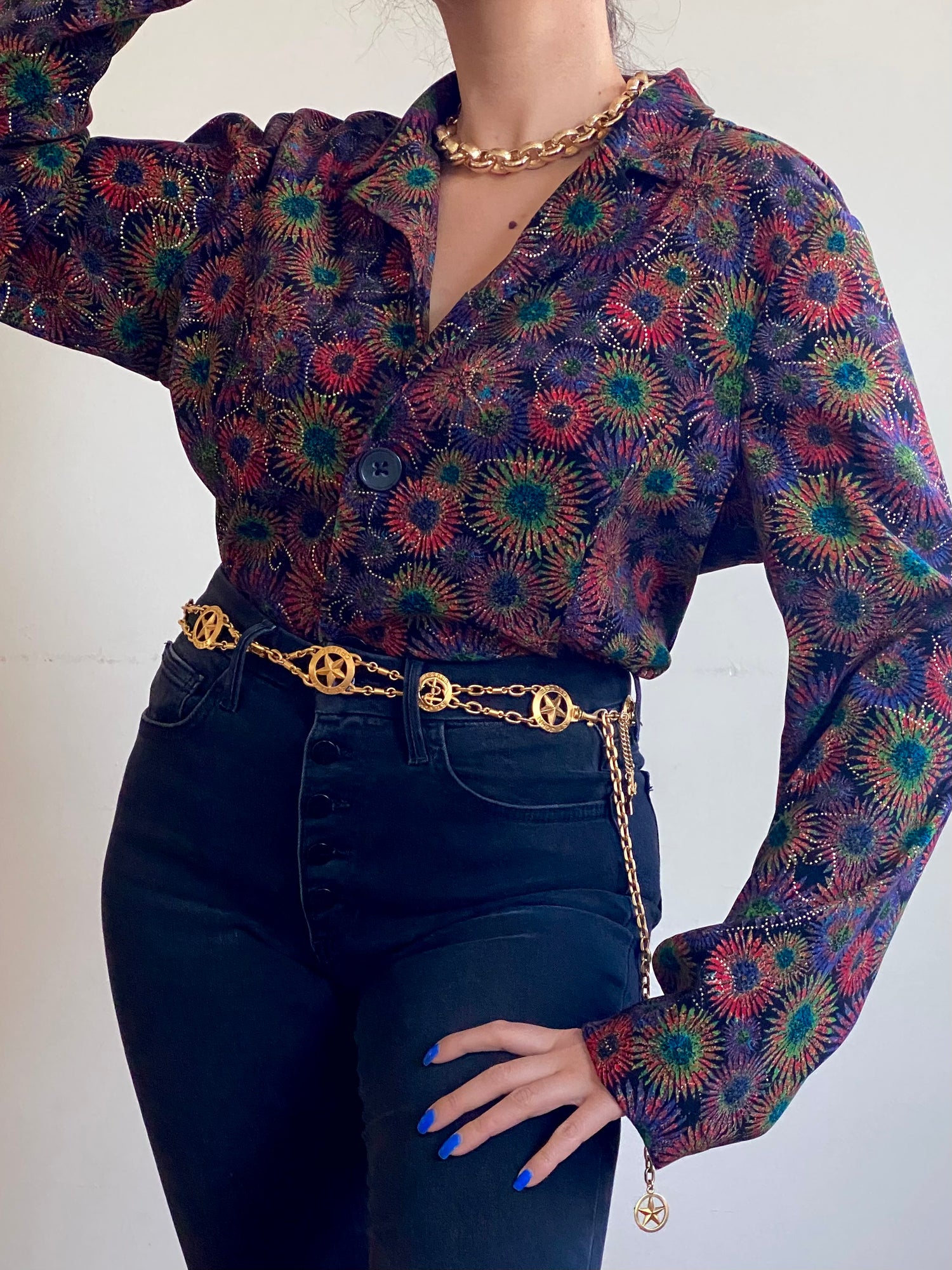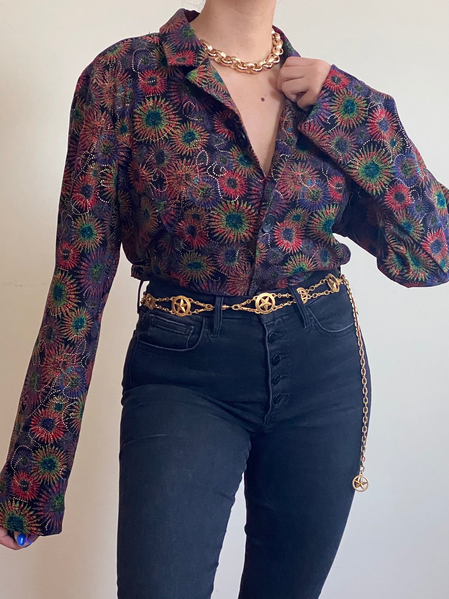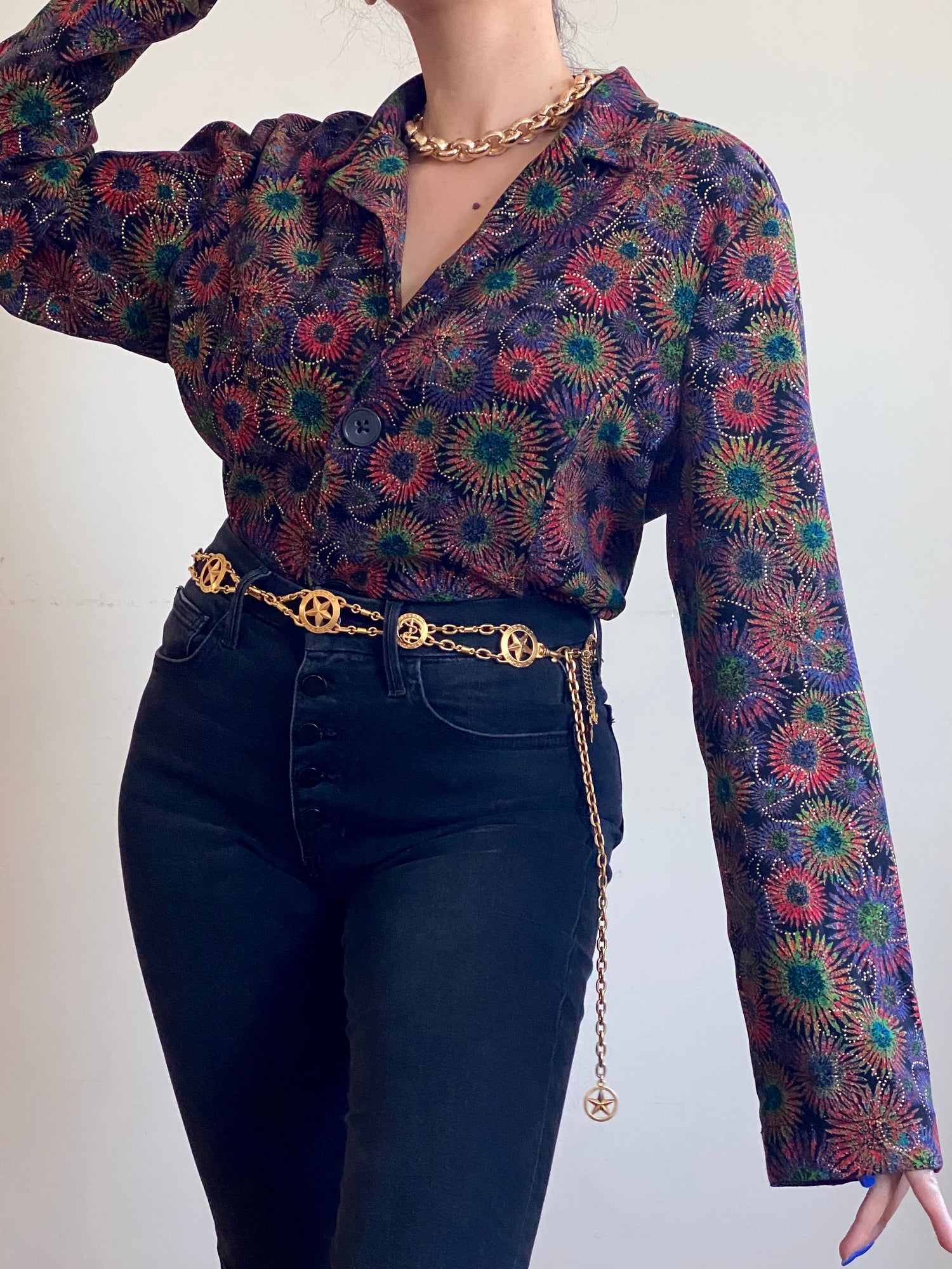 Y2K Sparkly Fireworks Jacket Shirt (XL)
