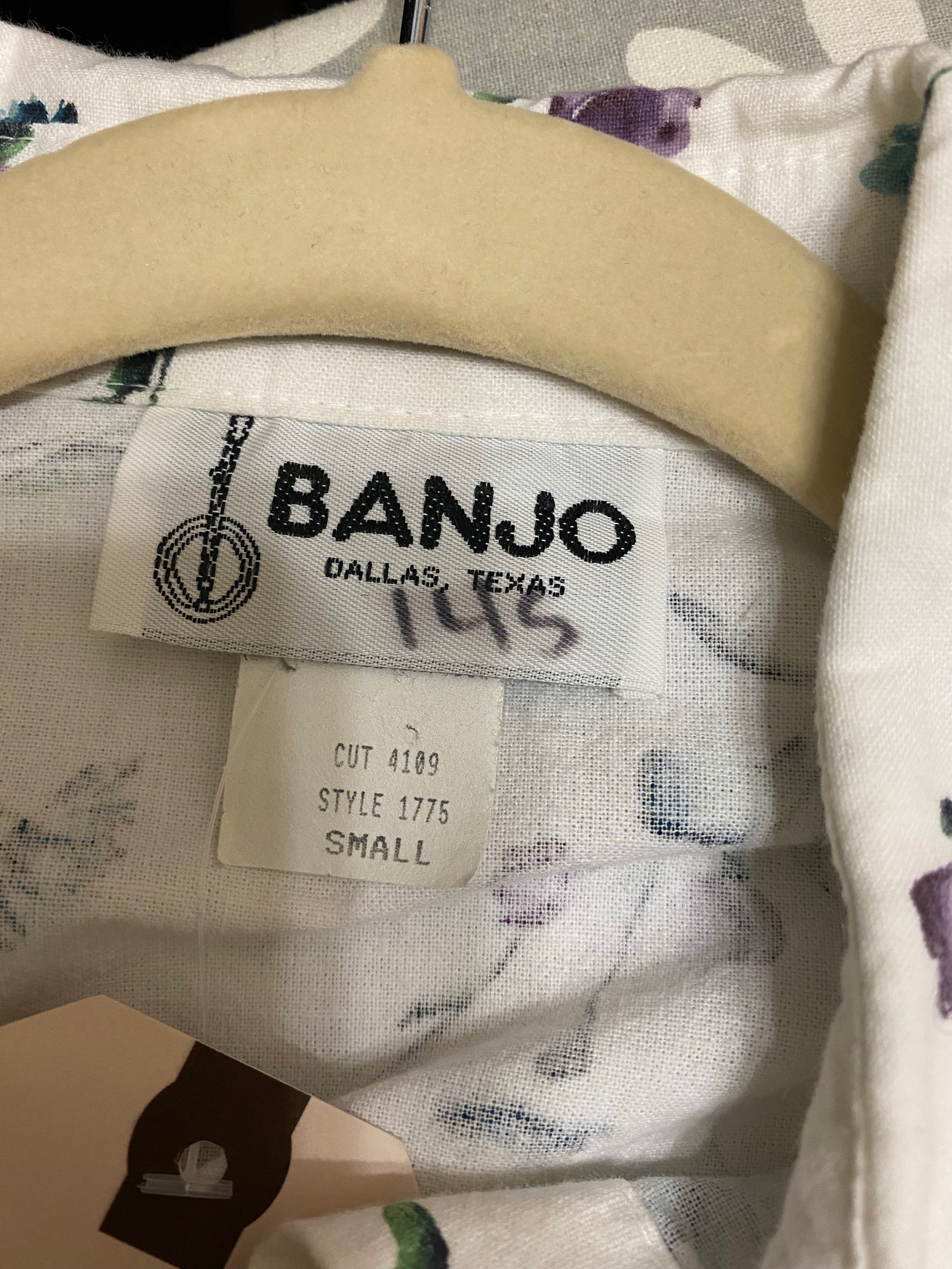 - Features: Short sleeve, button down, cropped style with asymmetrical bottom, floral design..