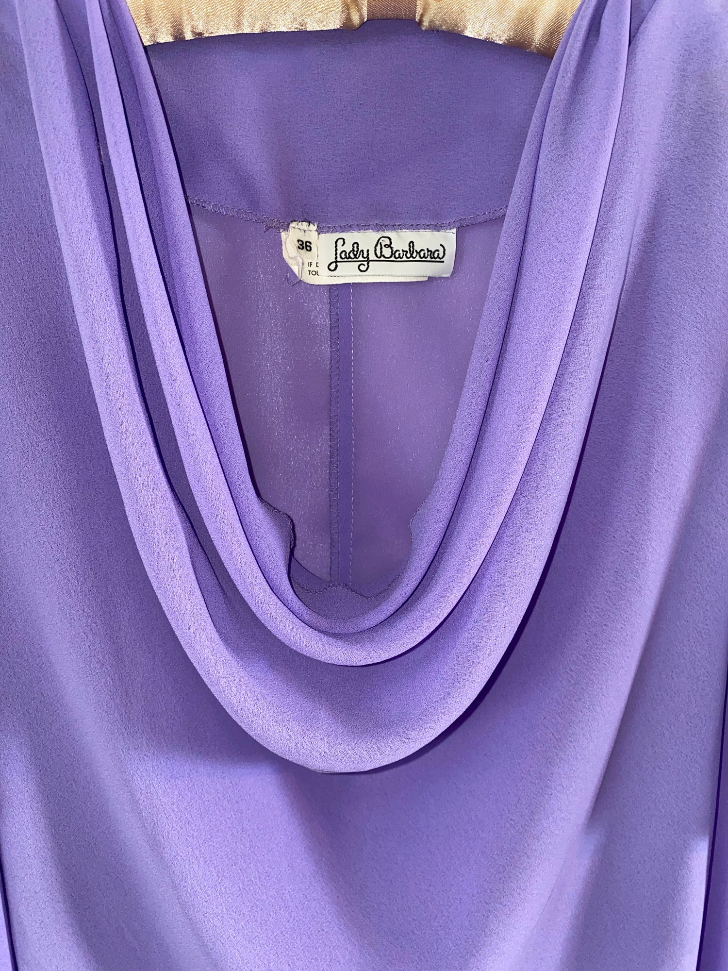 - Features: Cowl neck, bell short sleeves, slightly sheer, raised shoulders.