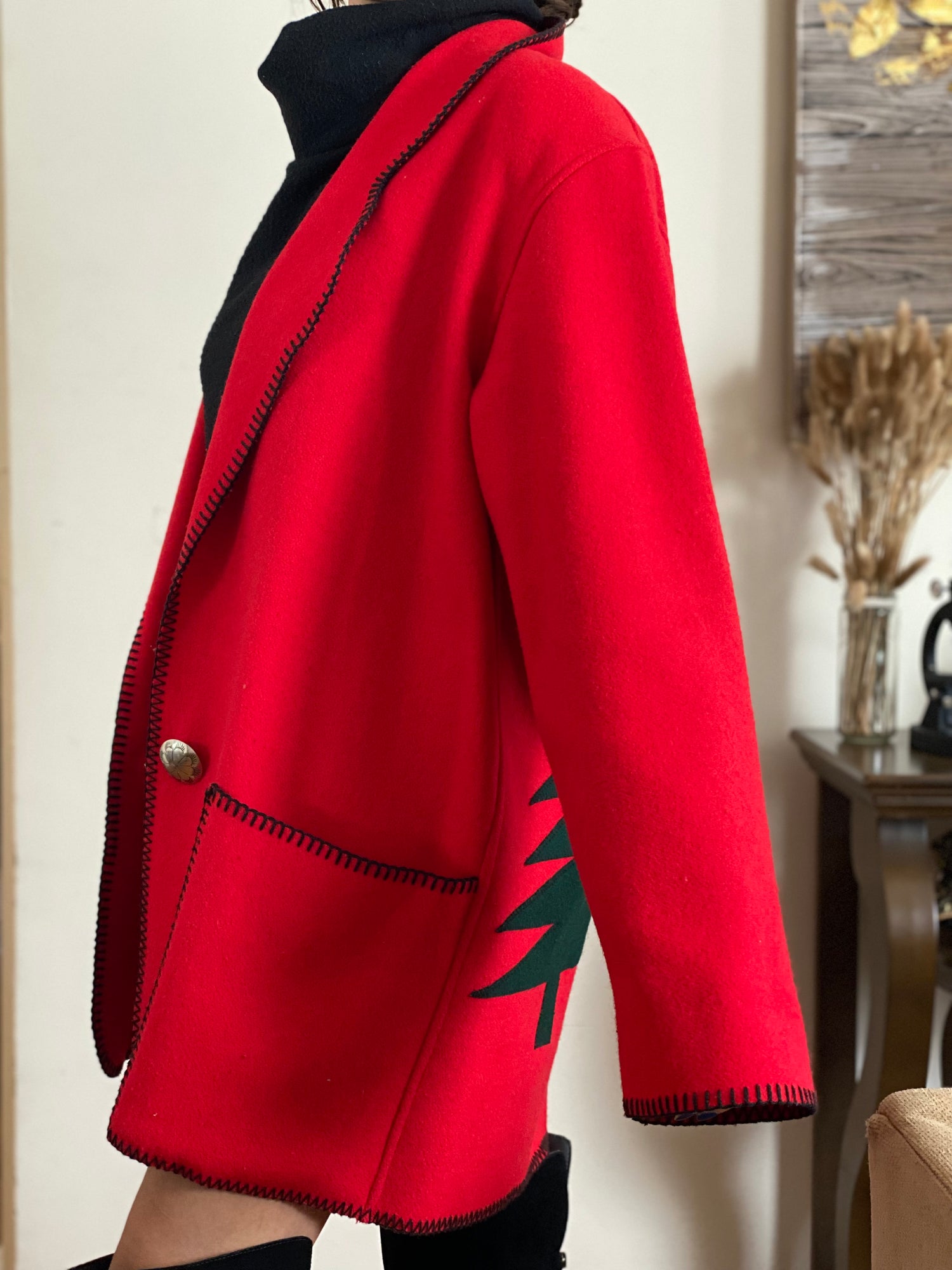 - Features: Shoulder pads, long sleeves, notch round collar. Made in the USA. Single front button closure, two front pockets.