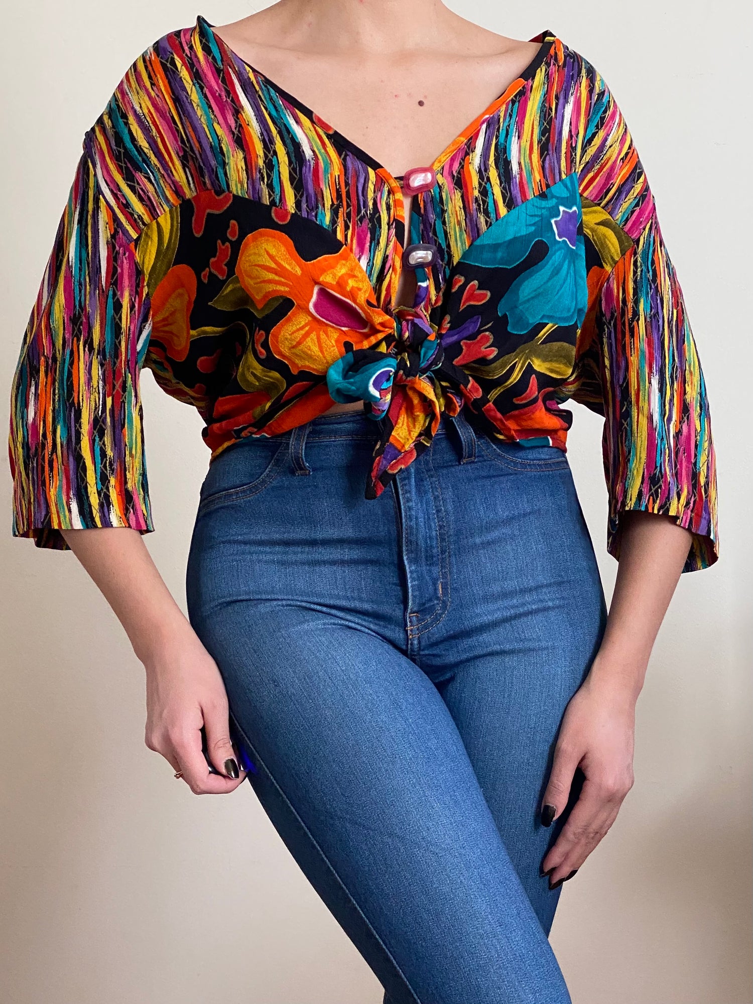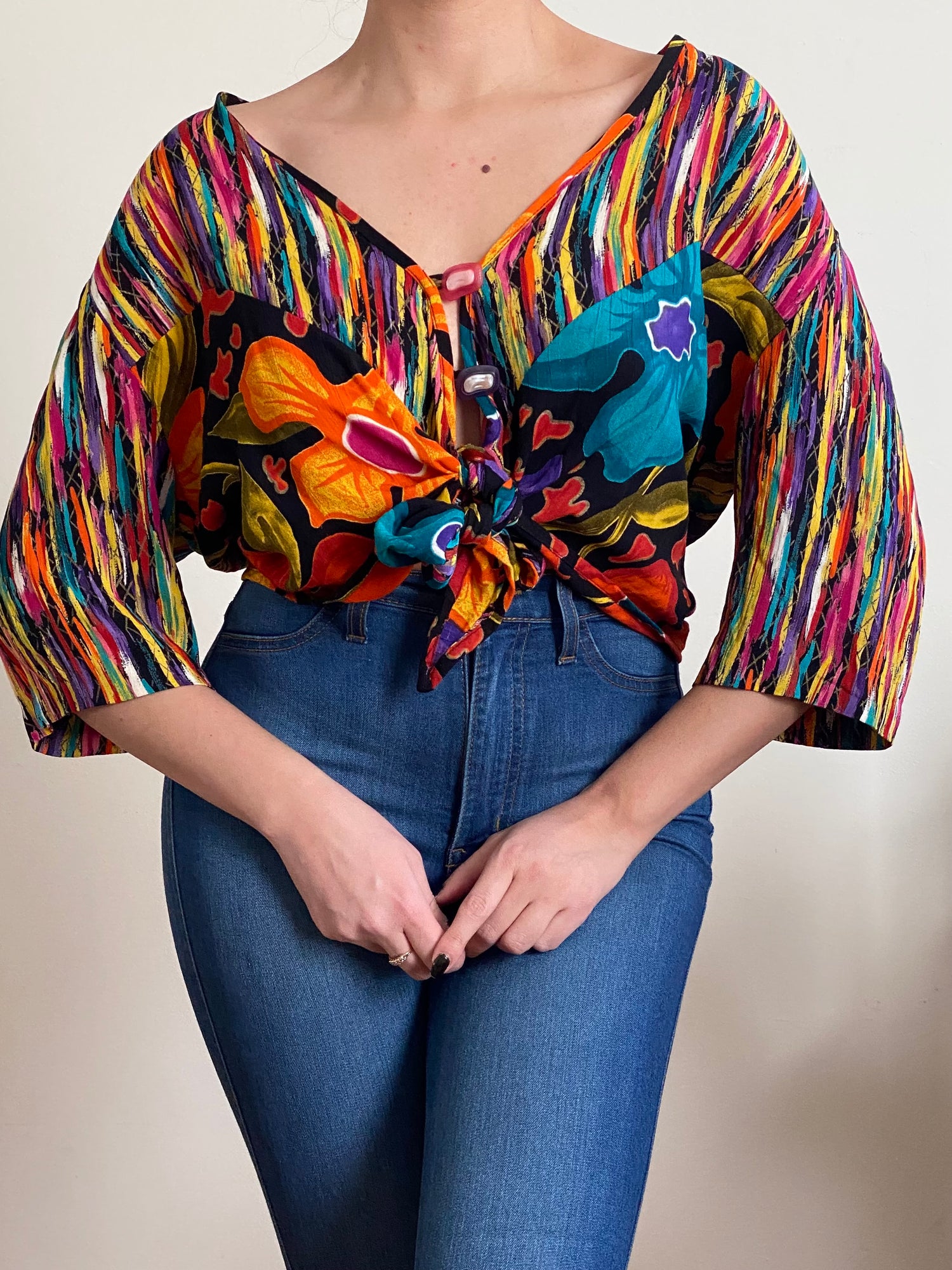 90's Multicolor Cropped Tie Knot Top (S-M)