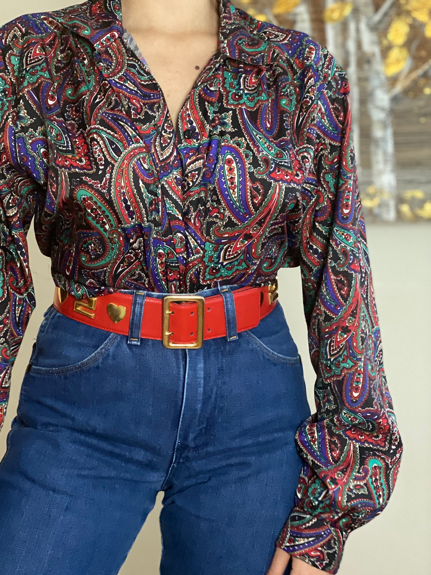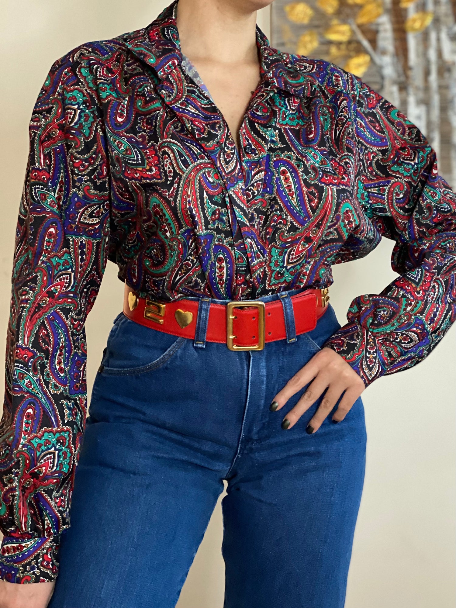 80's Abstract Paisley Long Sleeve Button Down Blouse (18)