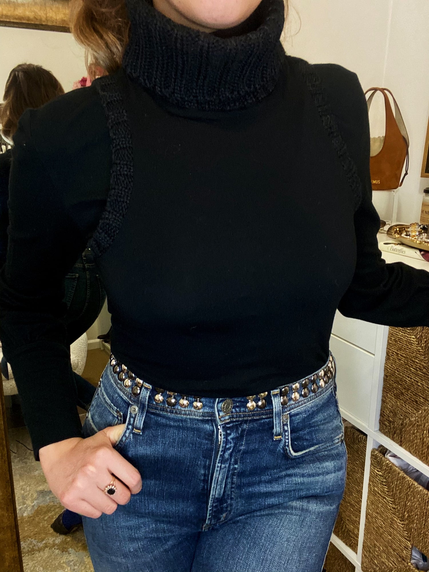 Fabric: Viscose, elastane combination. Turtleneck area is made out of wool, mohair & nylon.