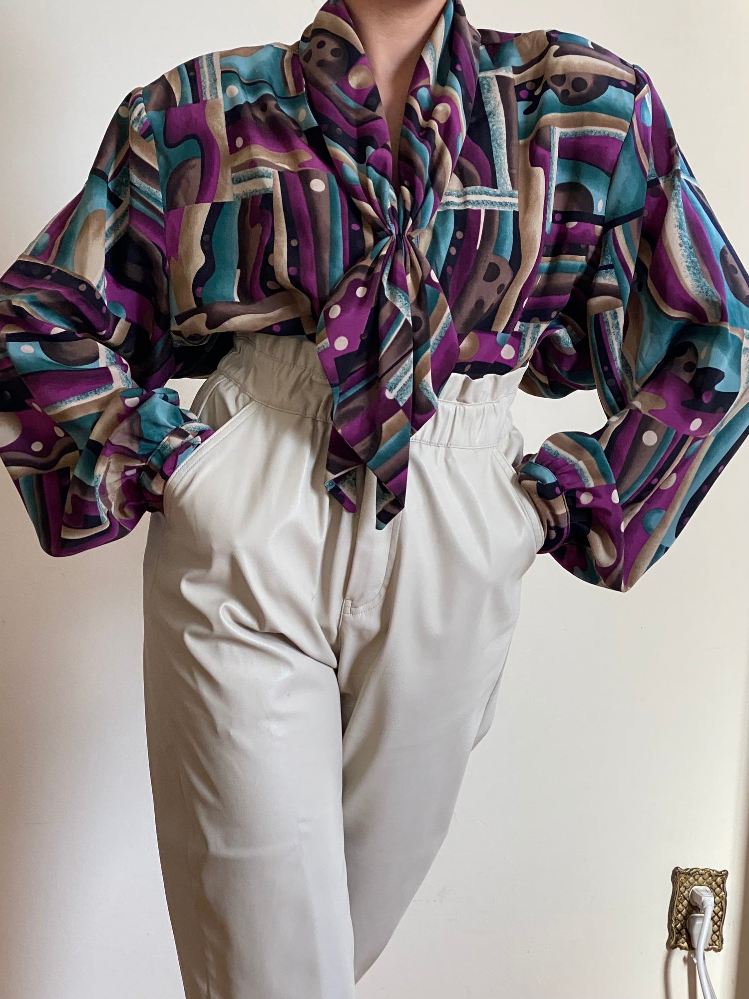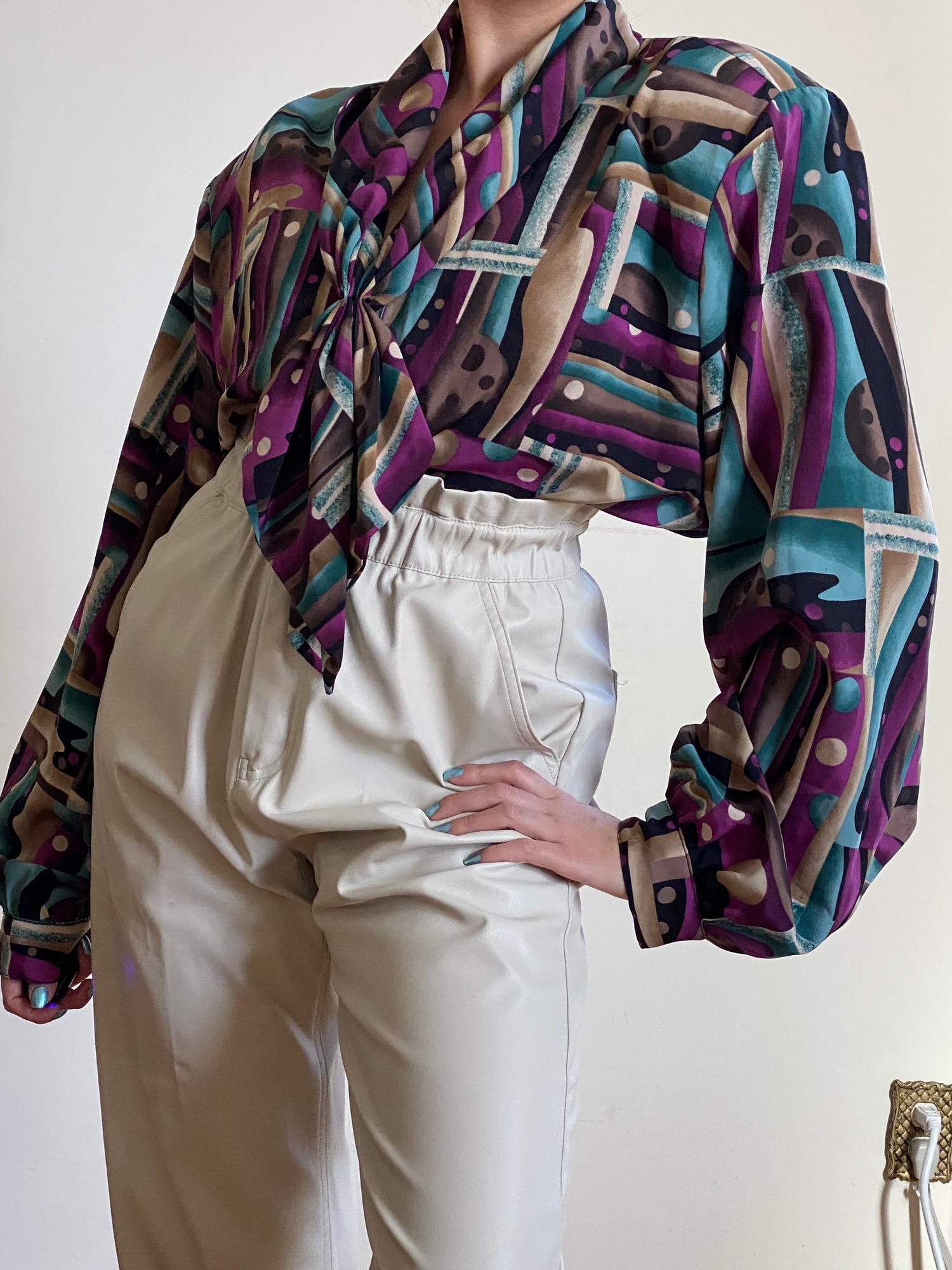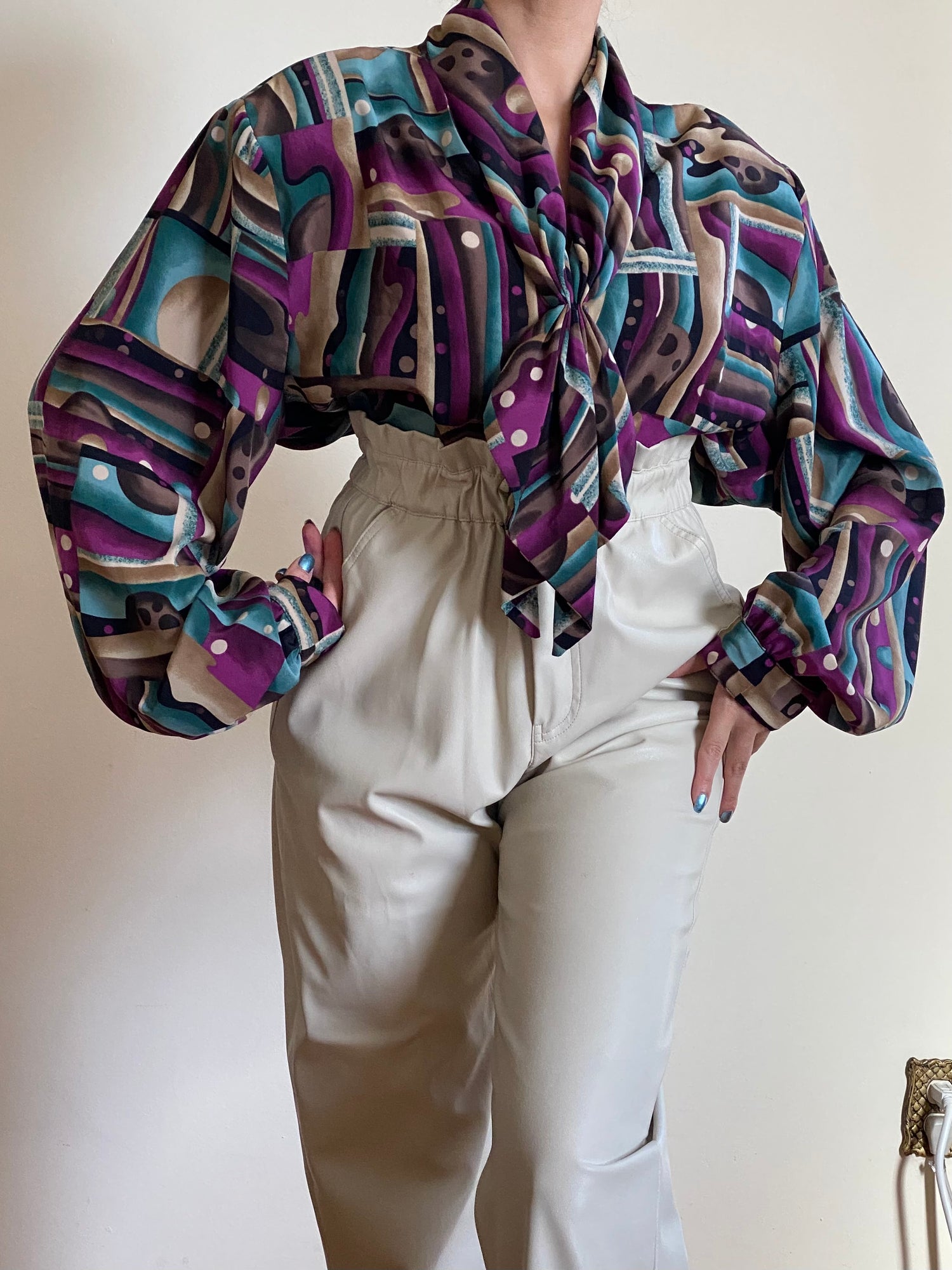 80's VOLUP PUFFY SLEEVE JABOT BOW BLOUSE