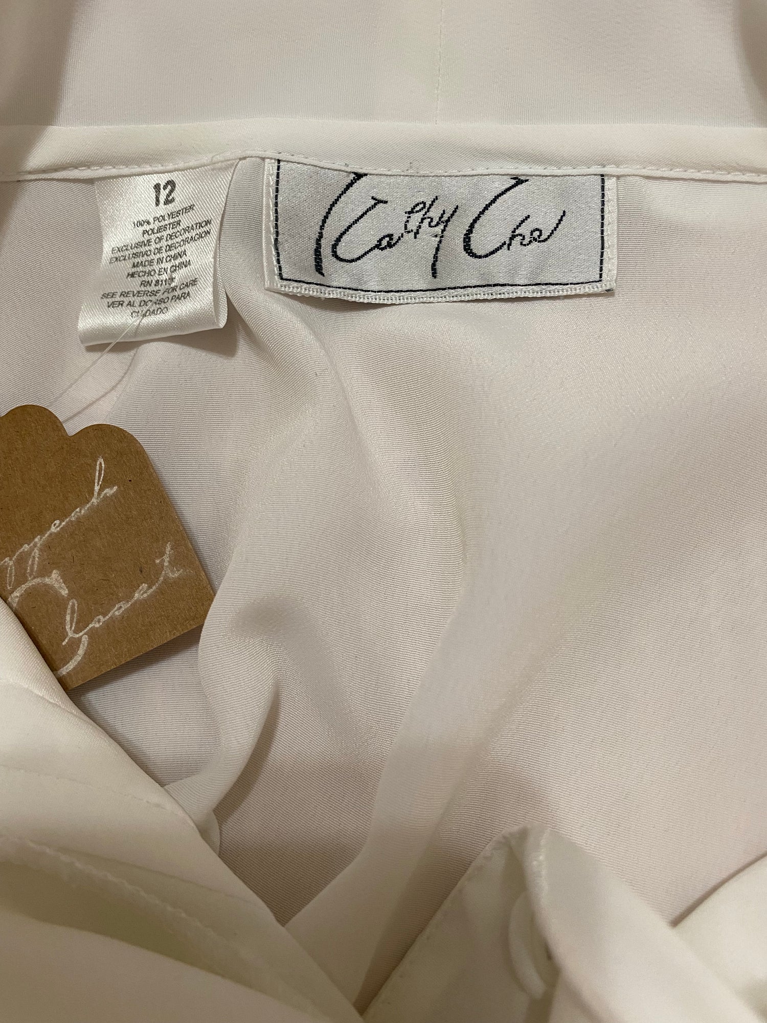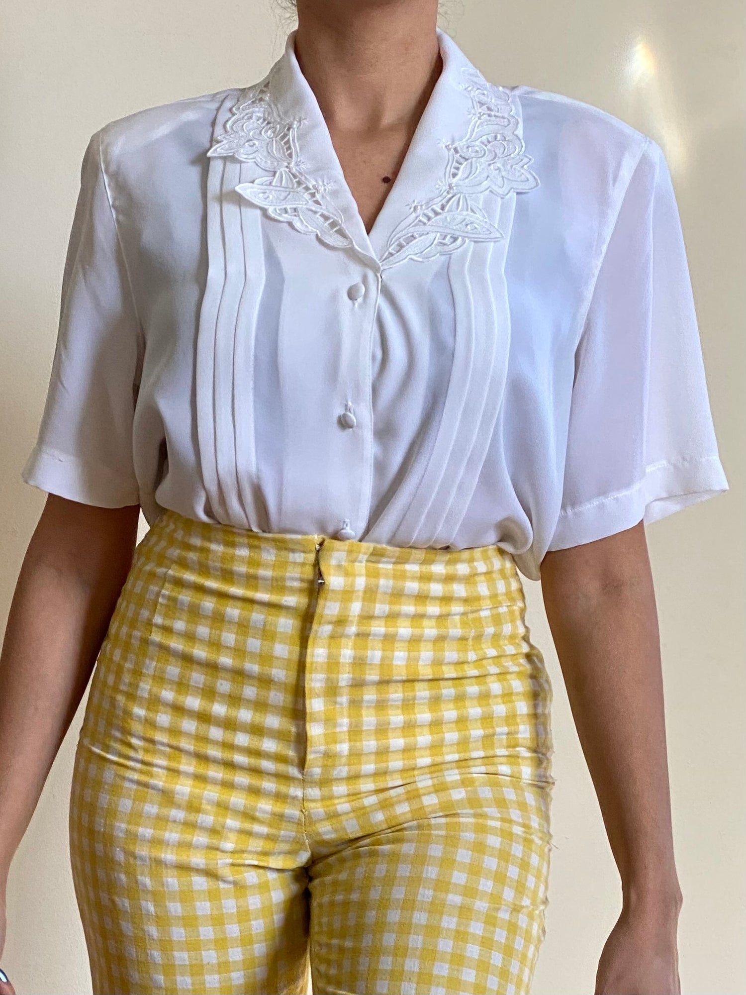 90's WHITE FLORAL EMBROIDERED SHORT SLEEVE BLOUSE (M)