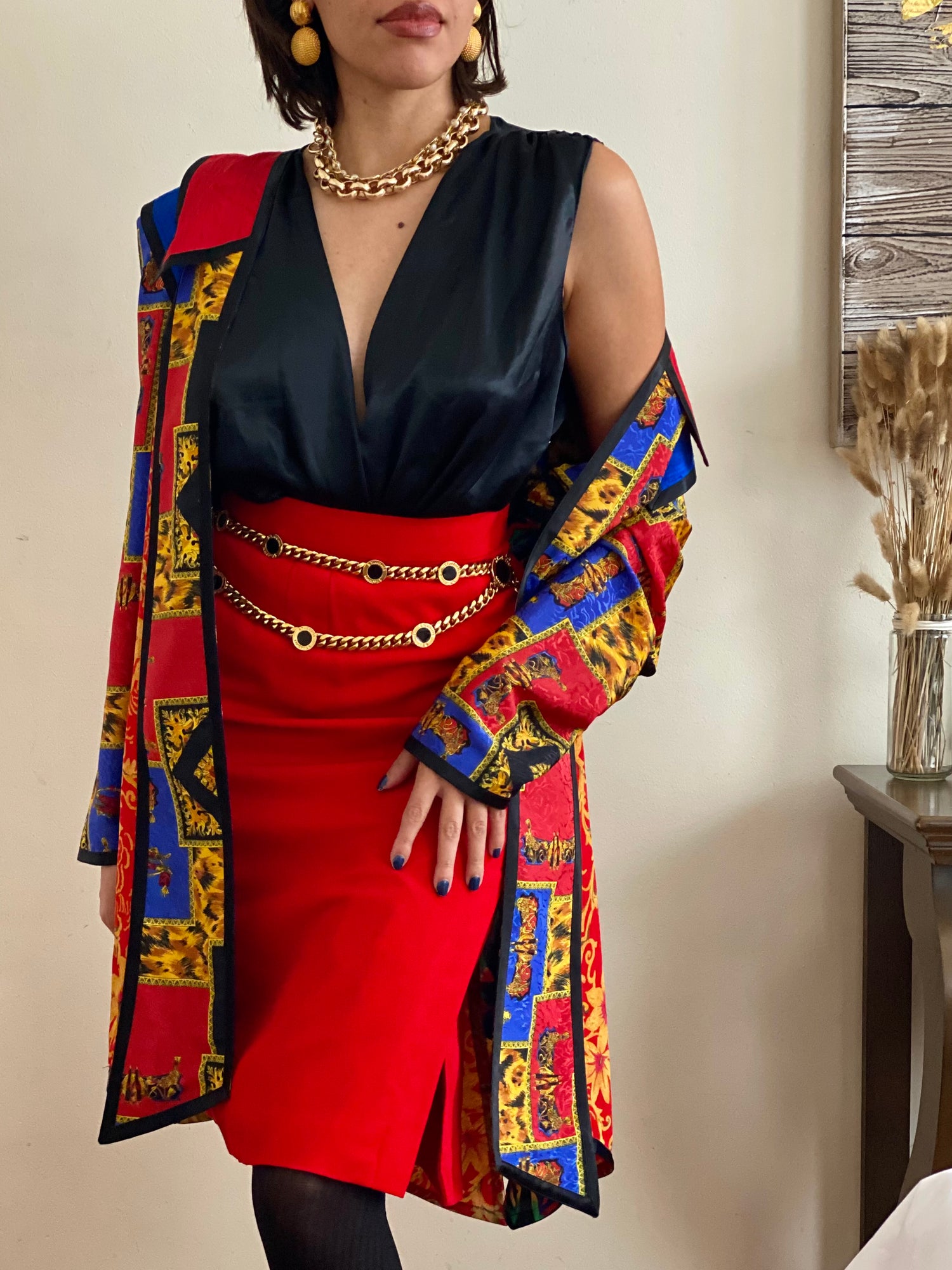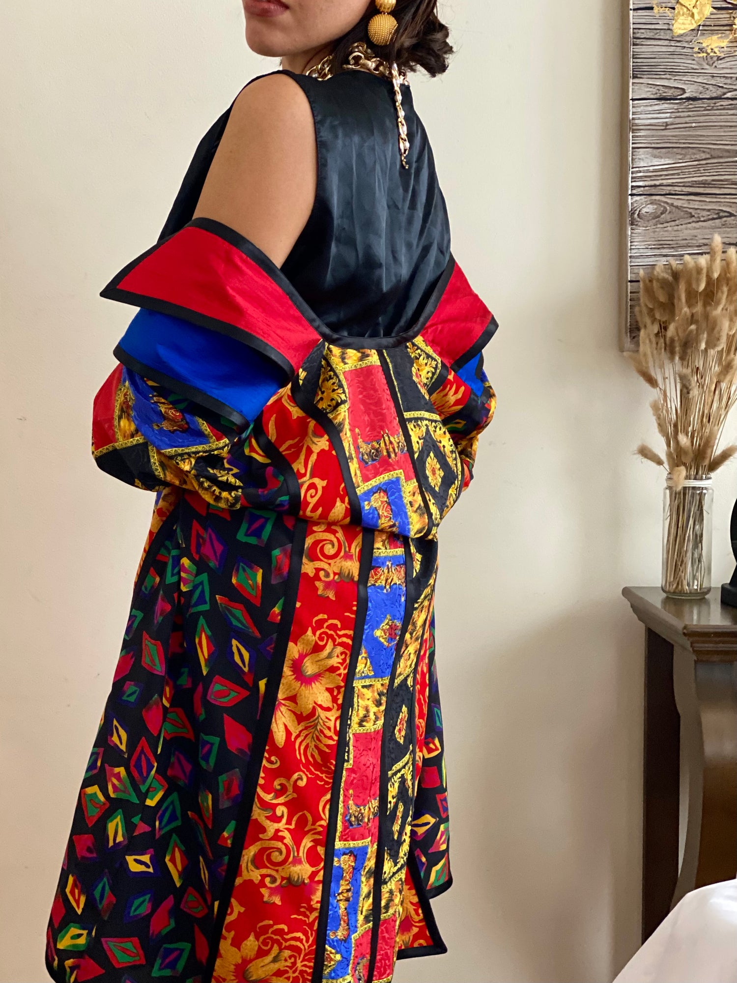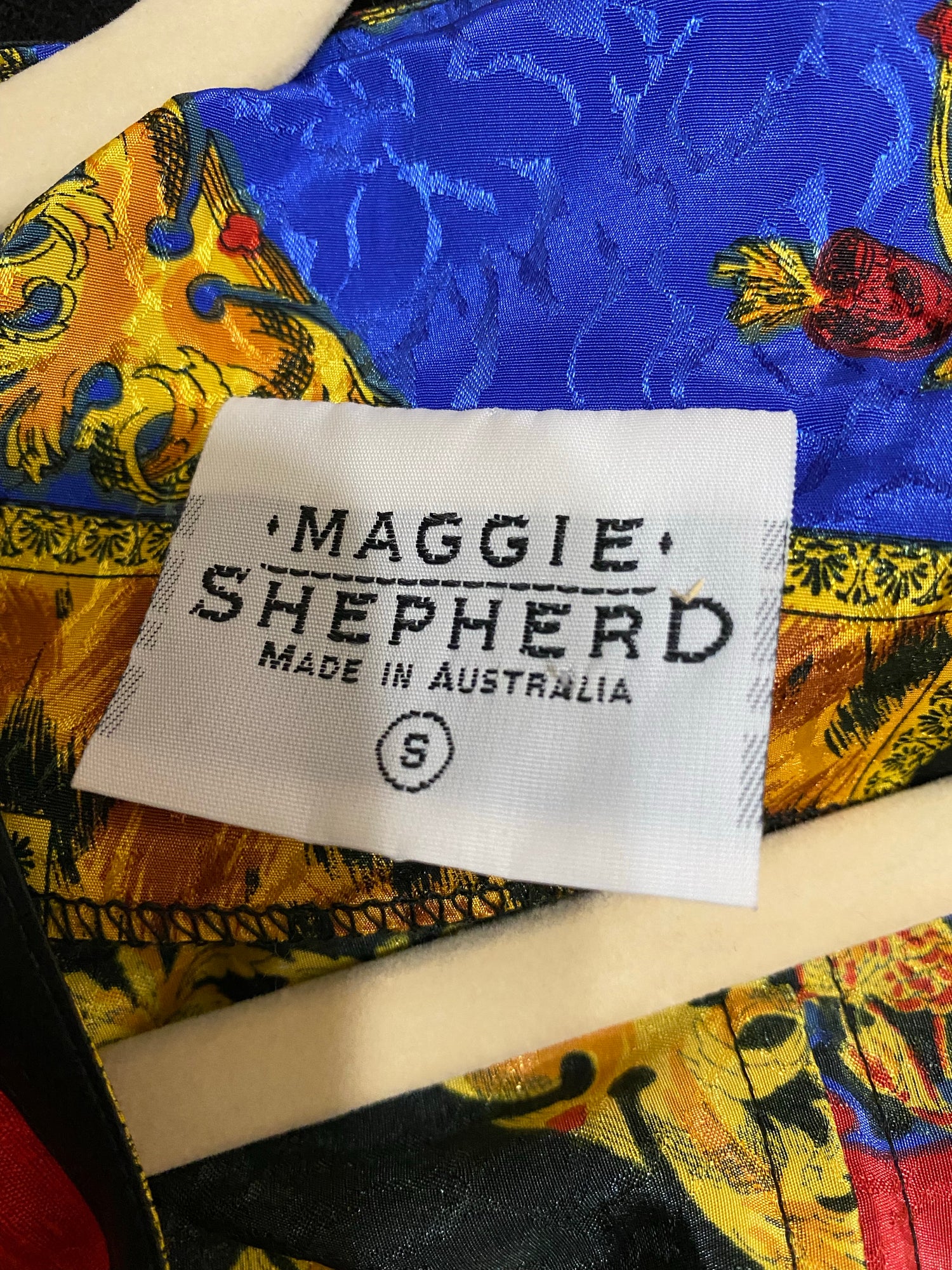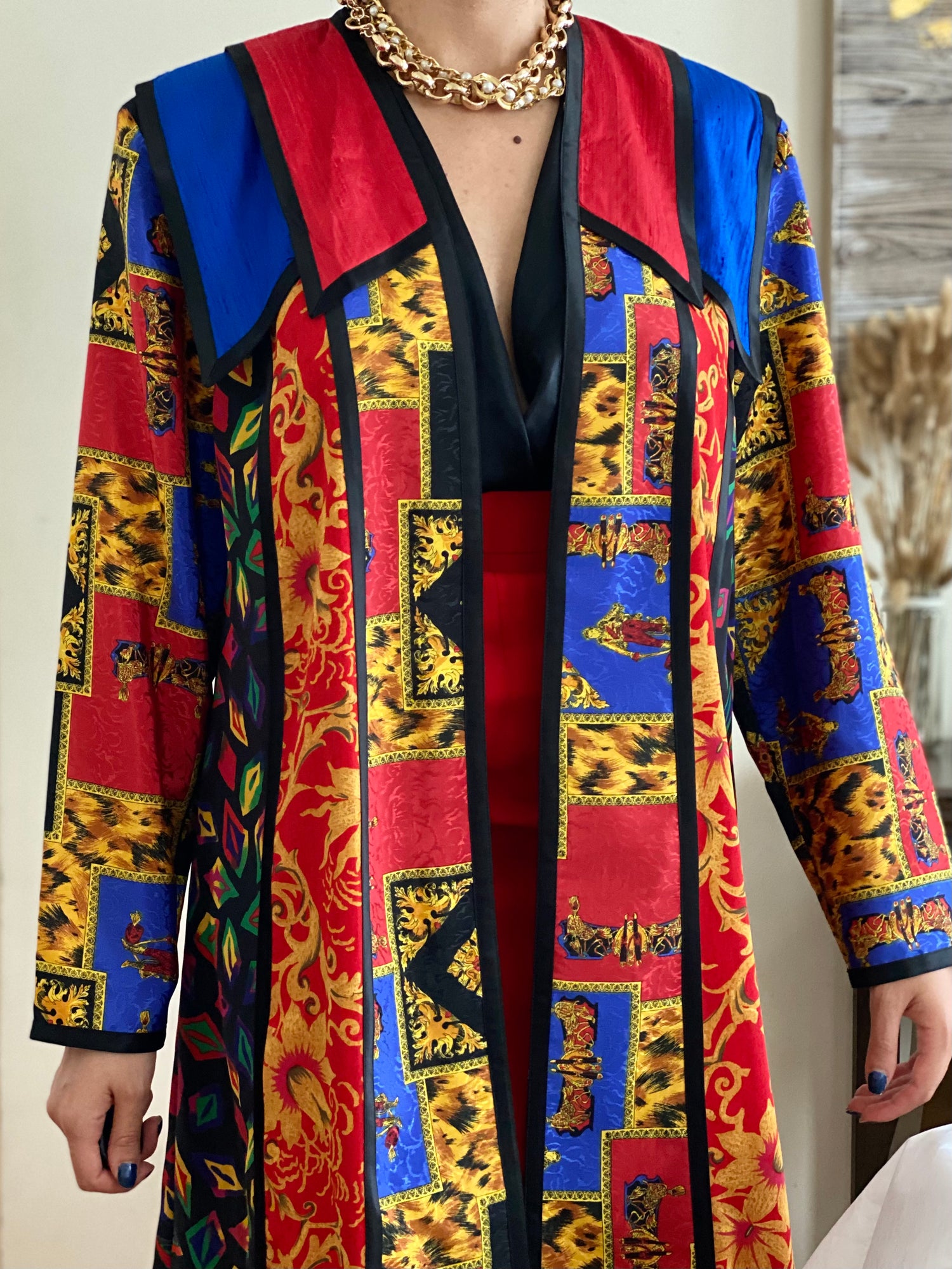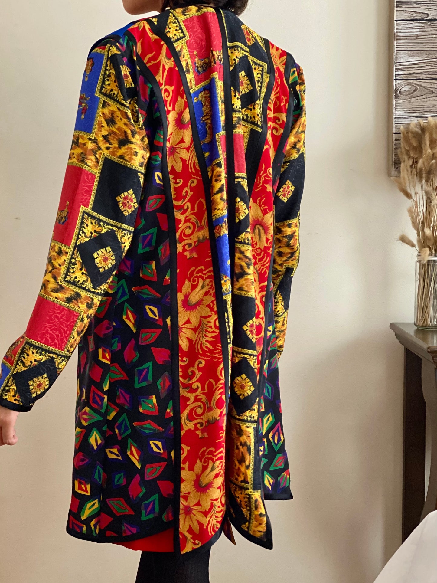 90's Brocade/Royal Pattern Open Front Jacket (S)