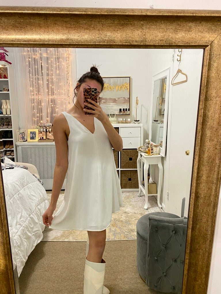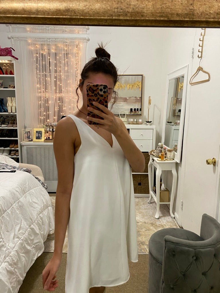 Features: Short, flowing dress, V-neck. Fully lined.