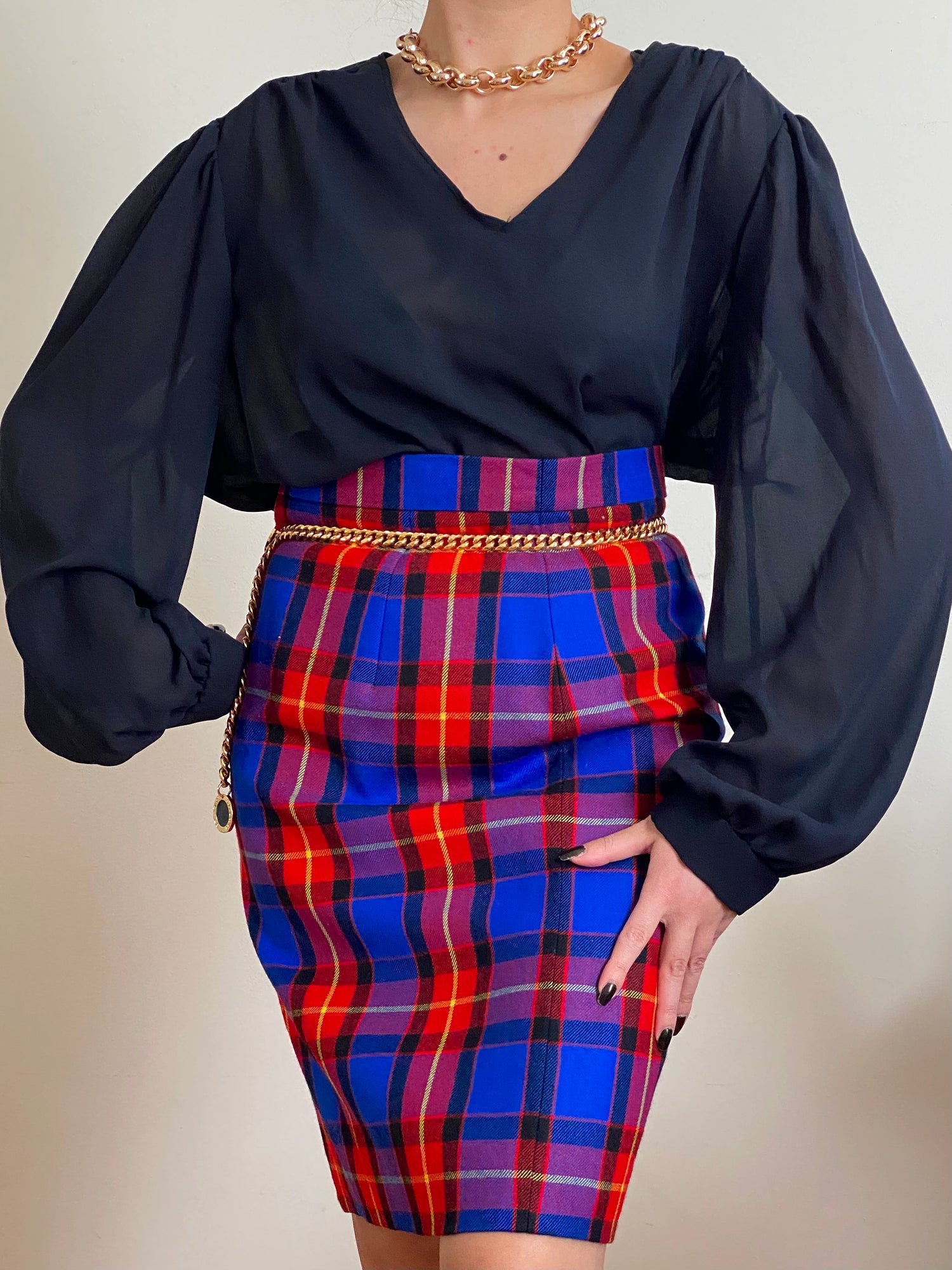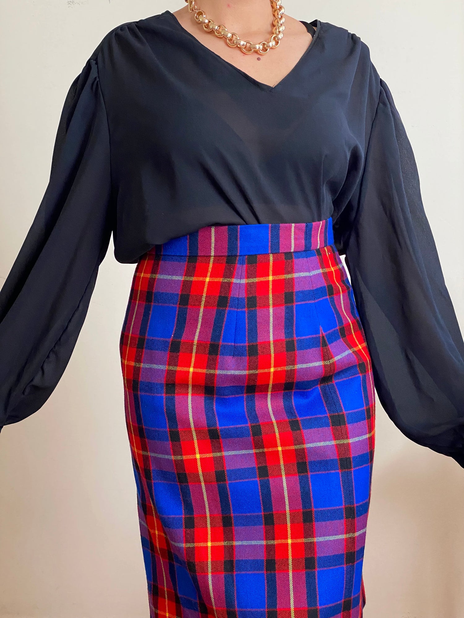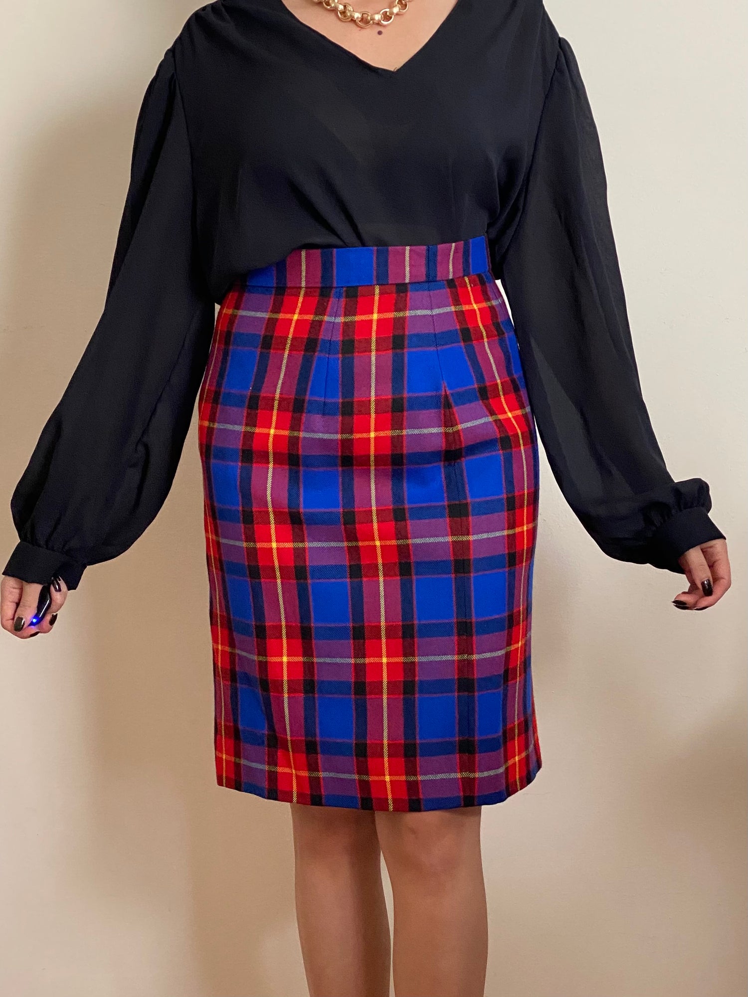 80's-90's ESCADA Plaid Rayon & Wool Knee Length Skirt (M)