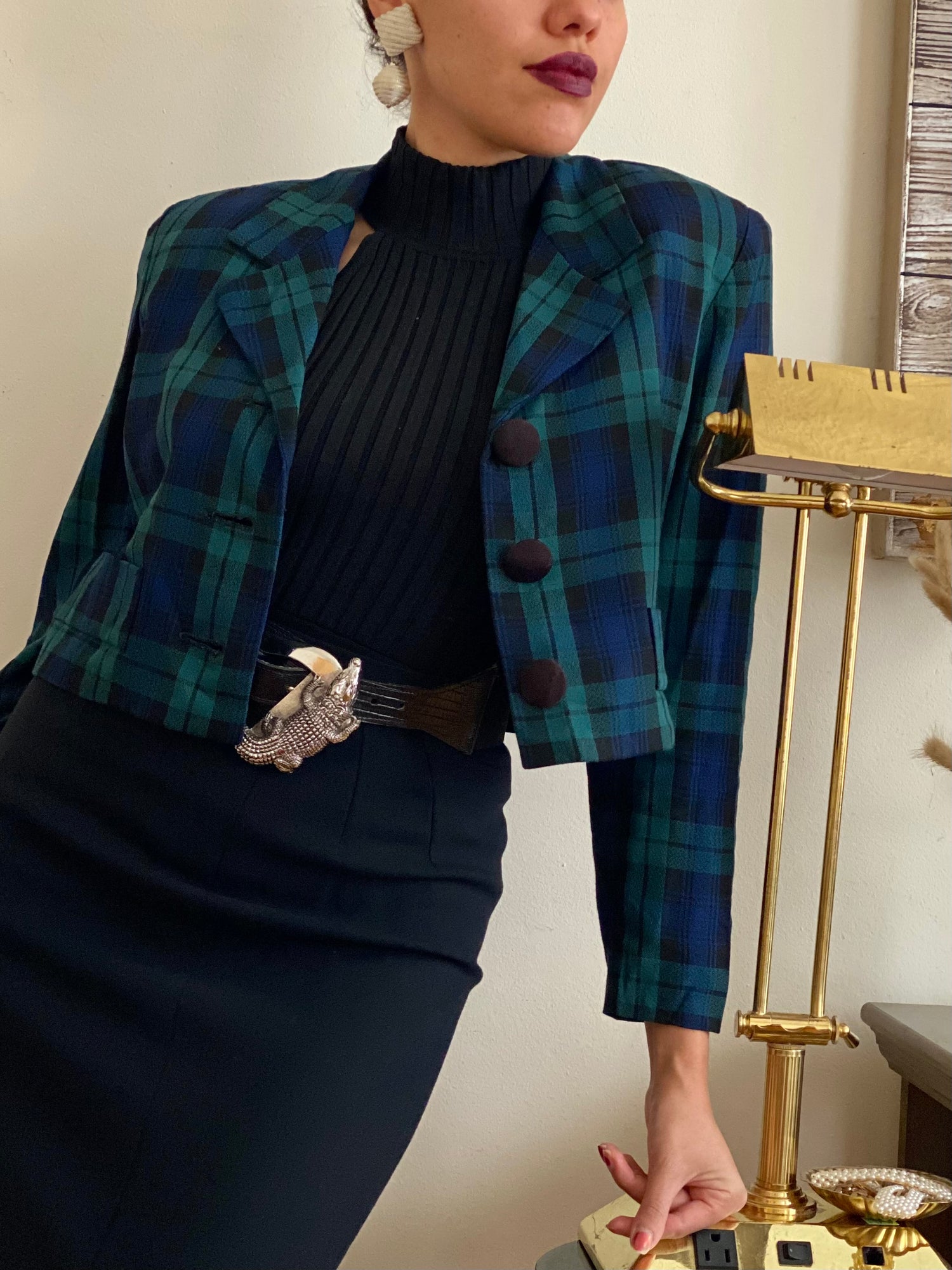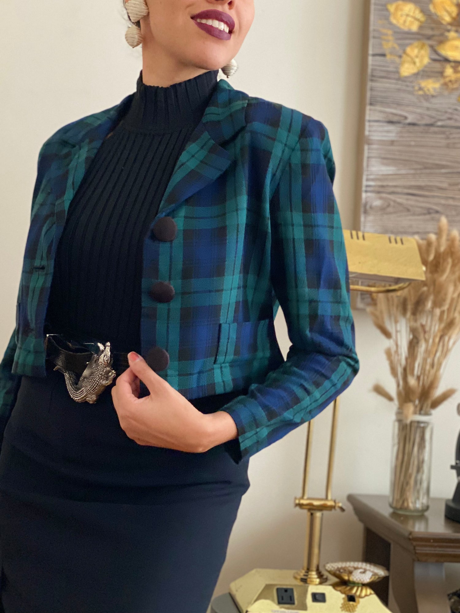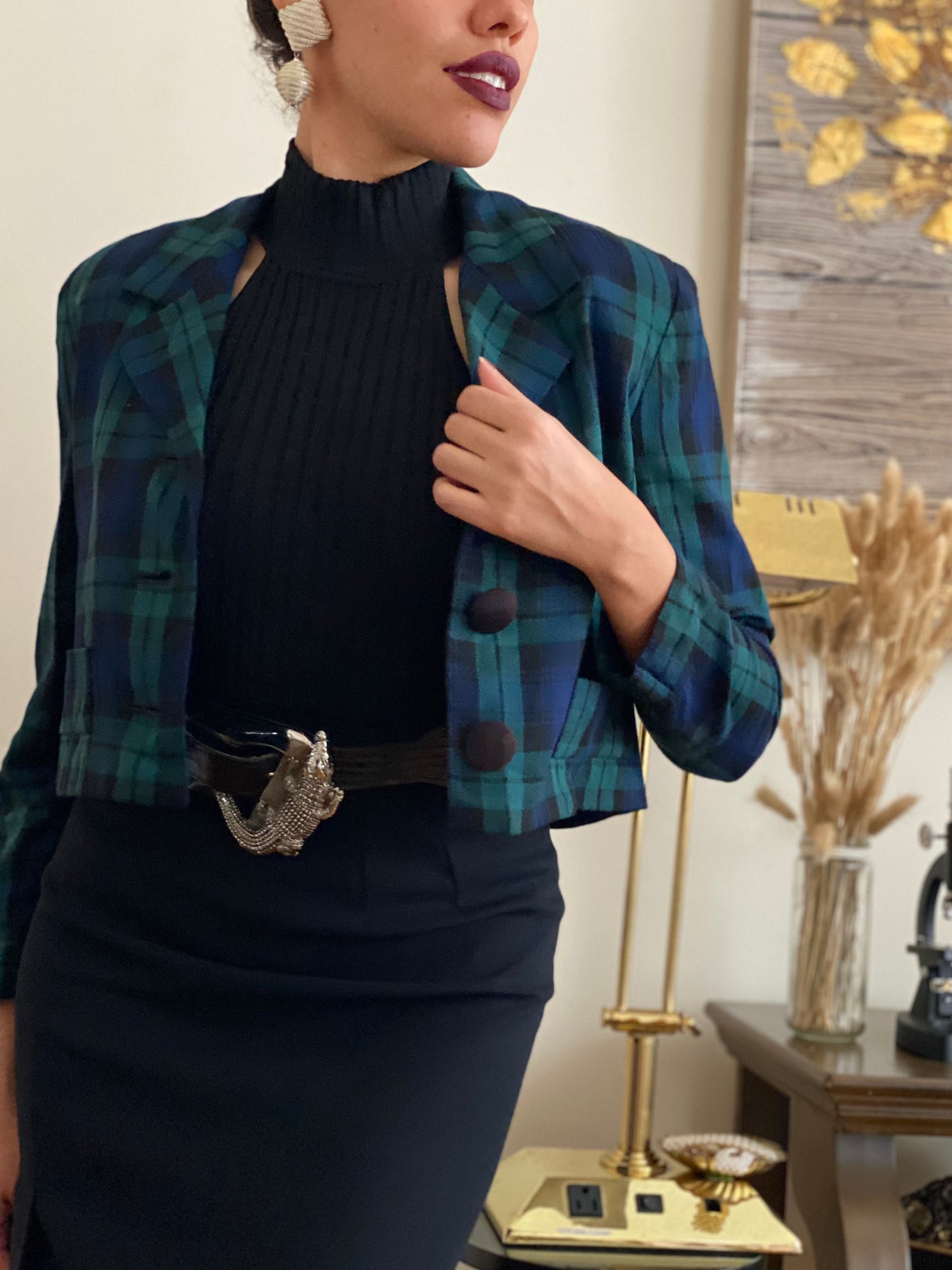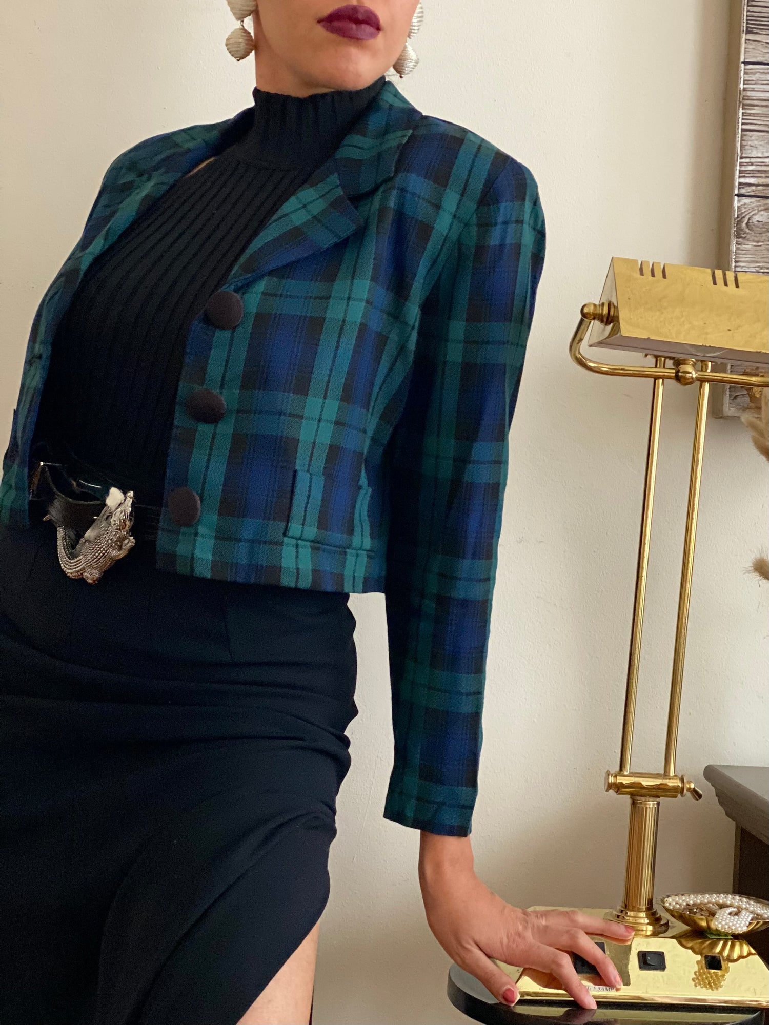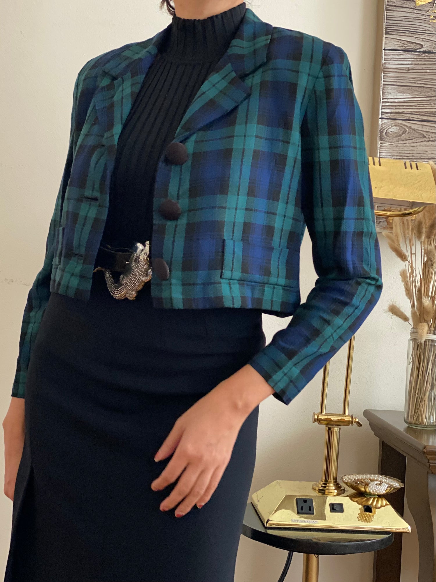 Plaid cropped jacket (S)