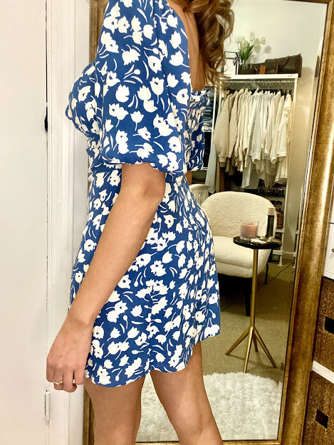Features: Center front tie, elastic neckline, quarter length puff sleeves, ruched bodice, unlined