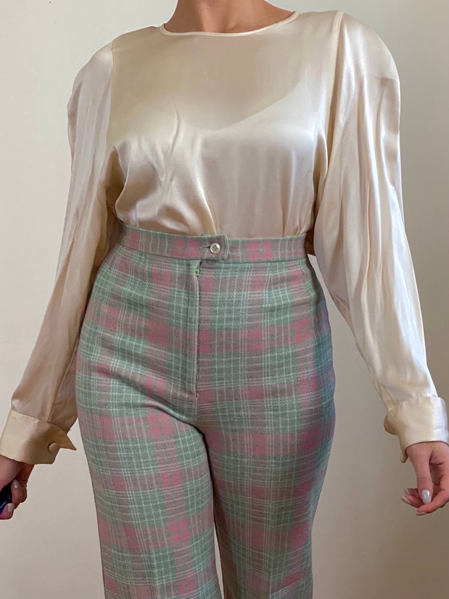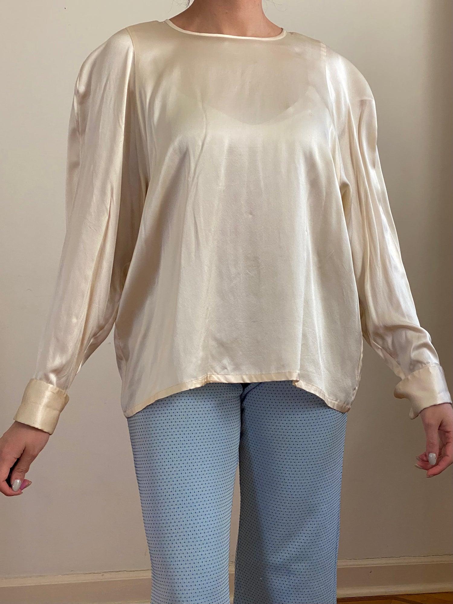 80's 100% Silk Blouse w/ Oversized Sleeves (M-L)