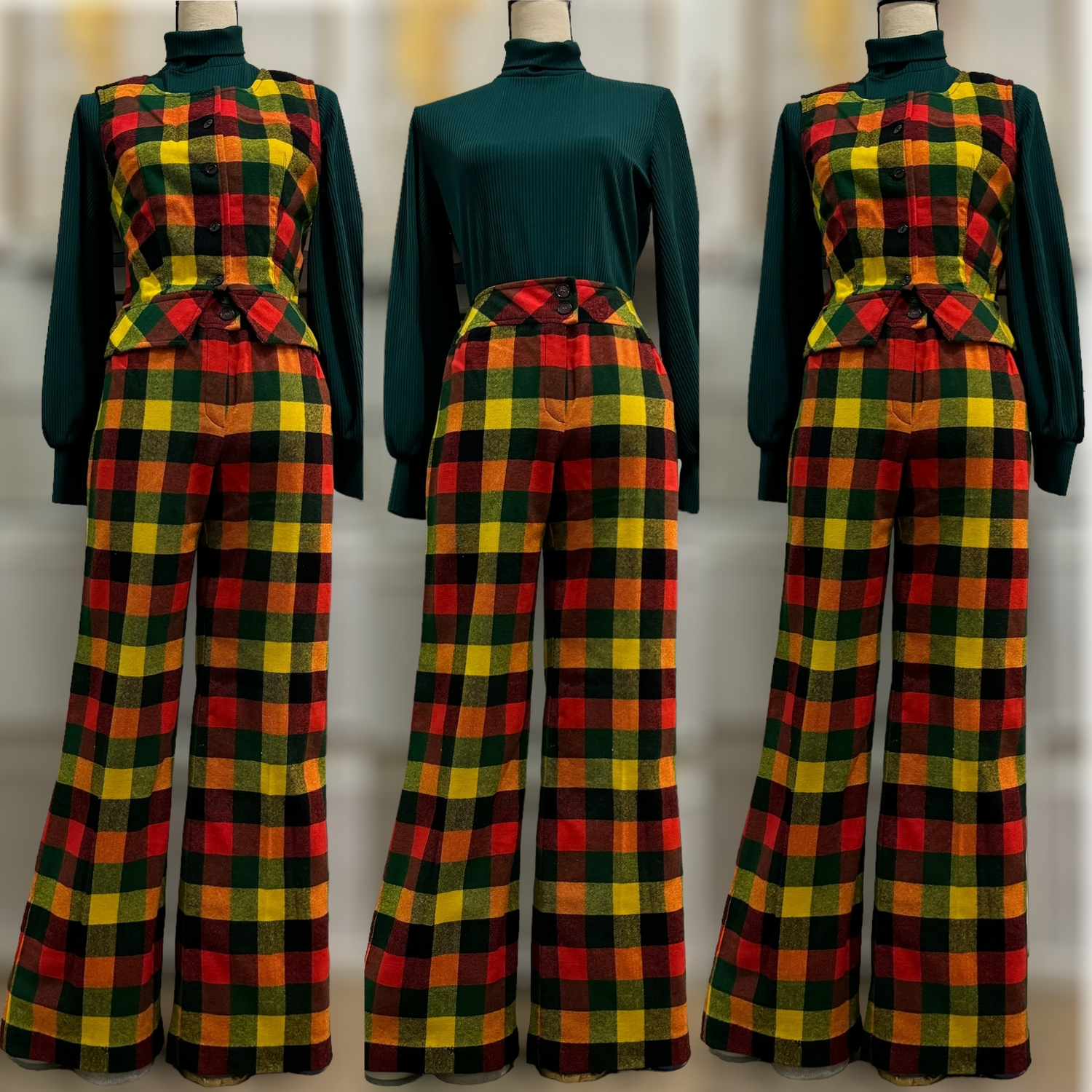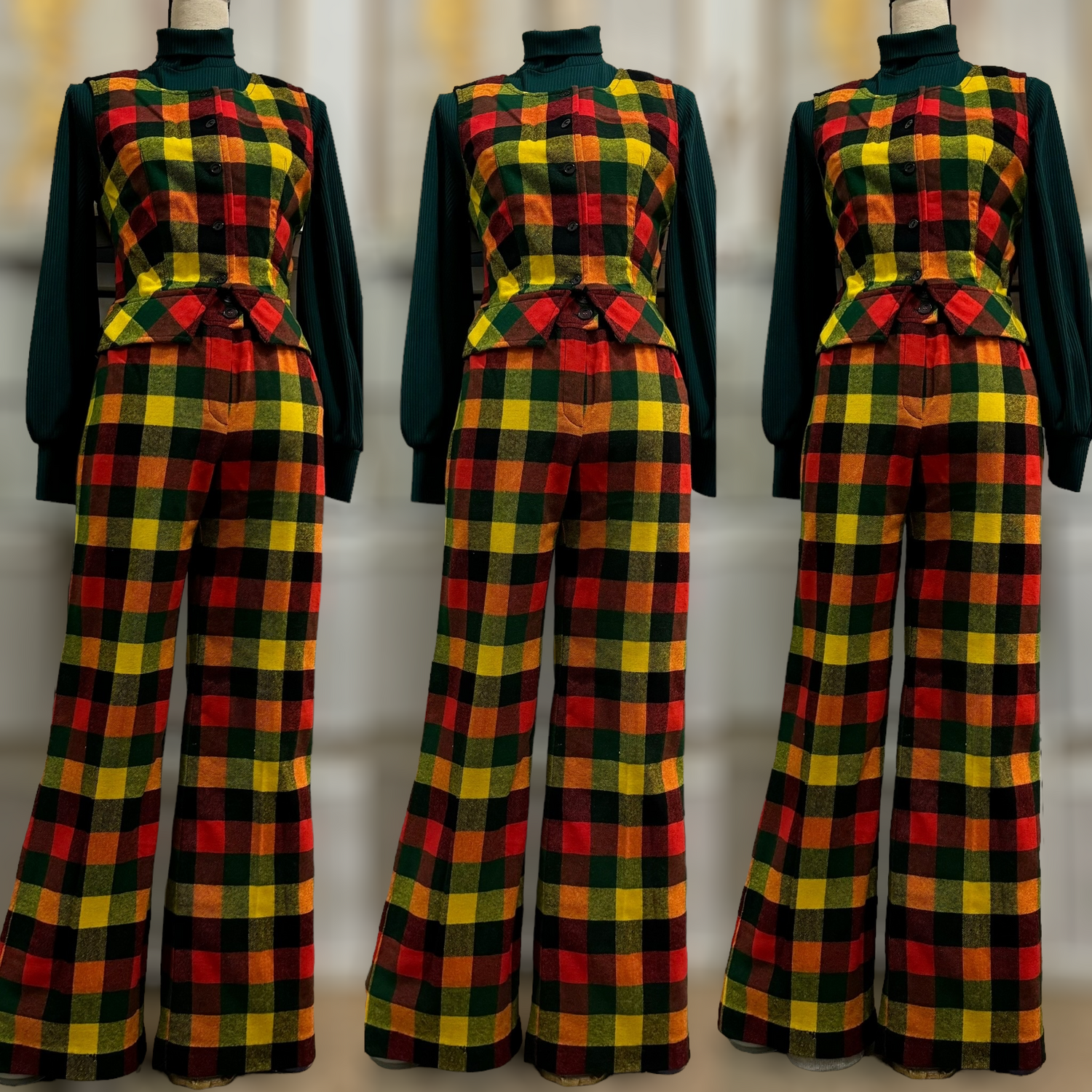 60's-70's Winter Checkered 2Pc Vest Pantsuit (M, 29”-30”W)