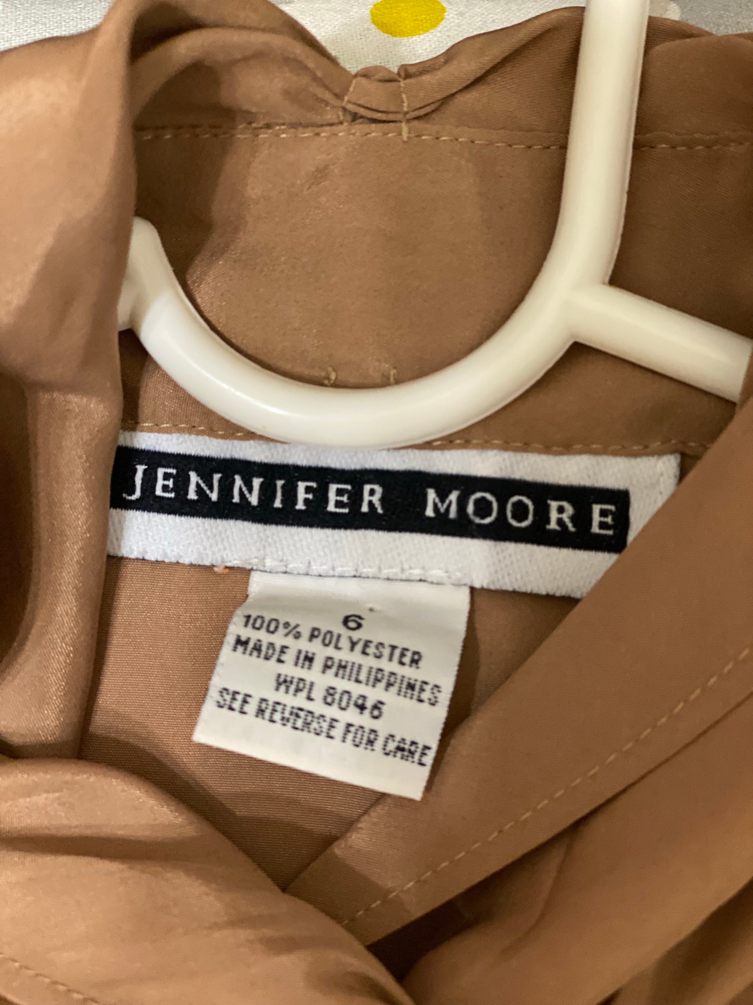 - Features: Jabot style collar, long sleeve, button down, button cuffs.