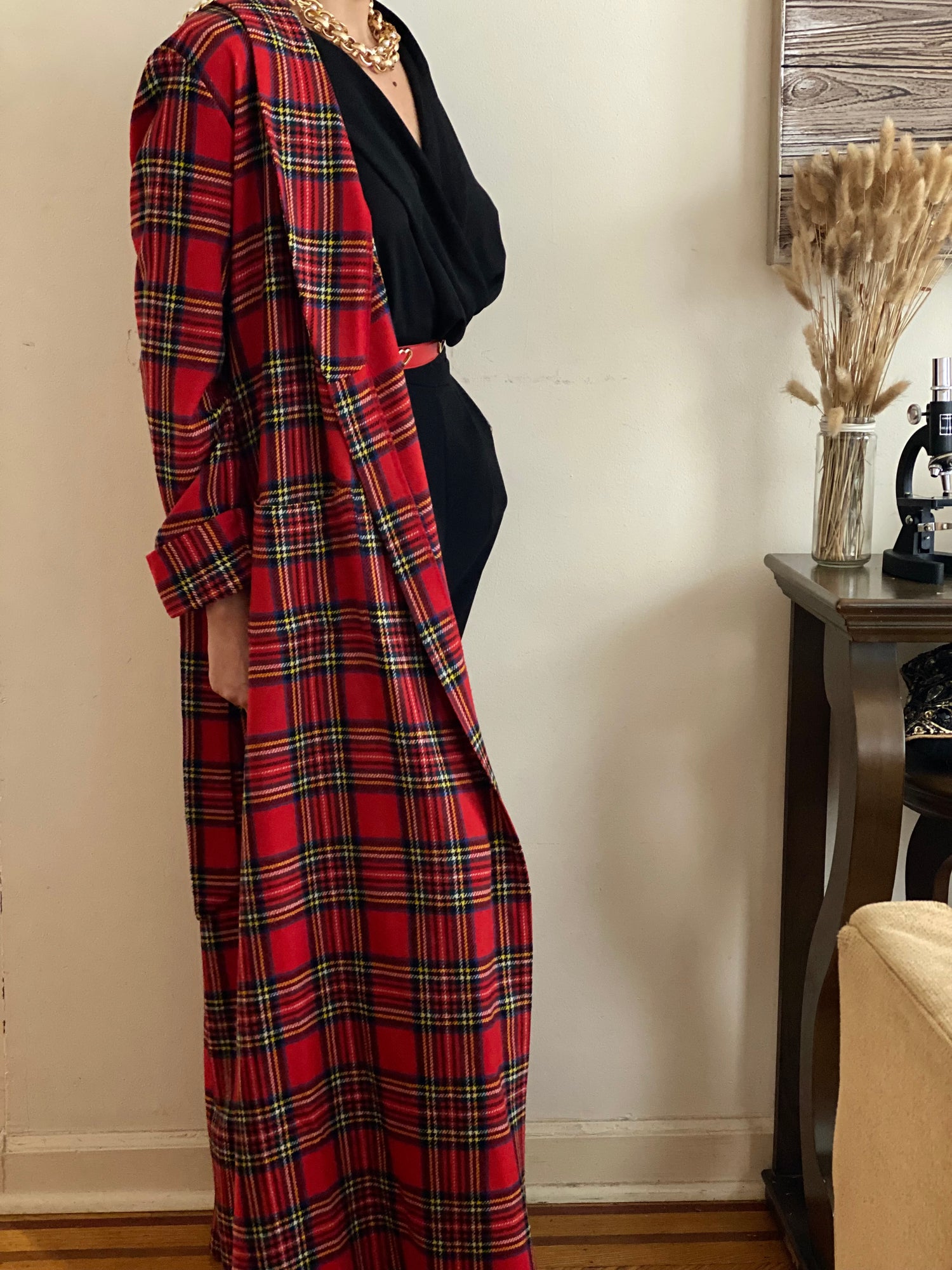 70's Tartan/Plaid Full Length Coat/Robe (XS)