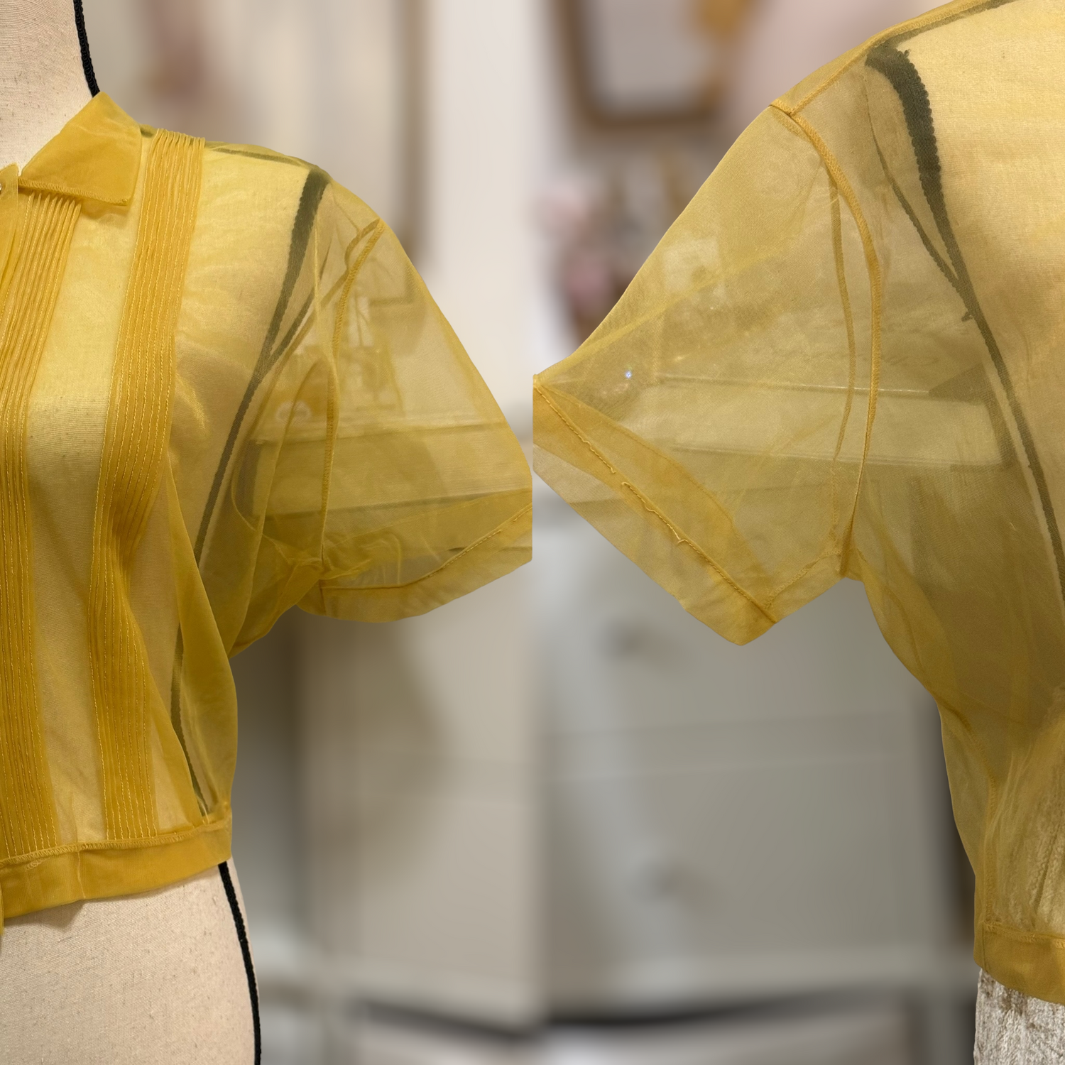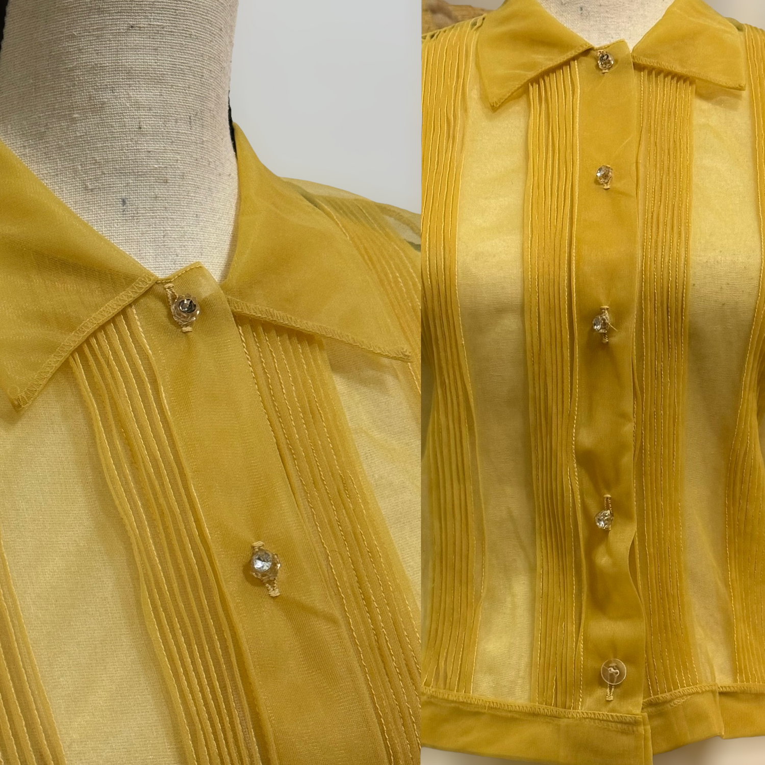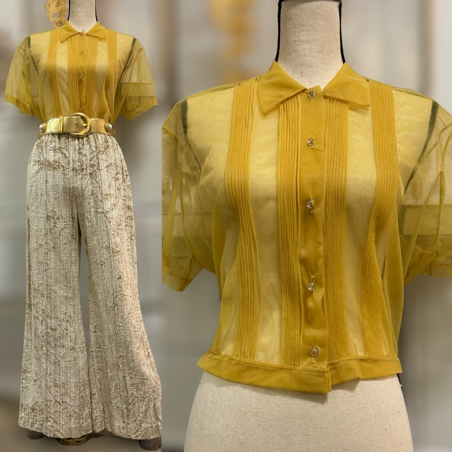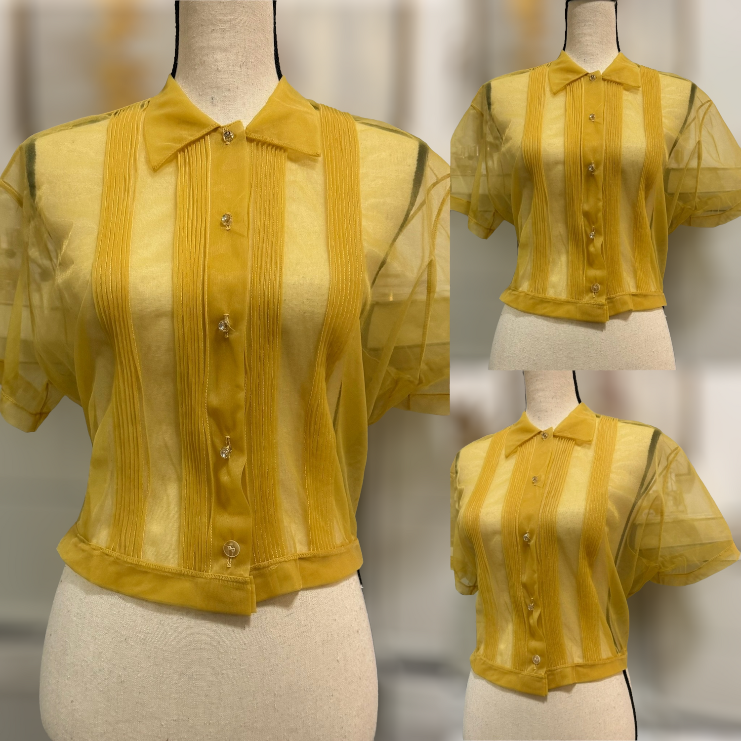 40s-50s nylon blouse in a stunning yellow gold hue.