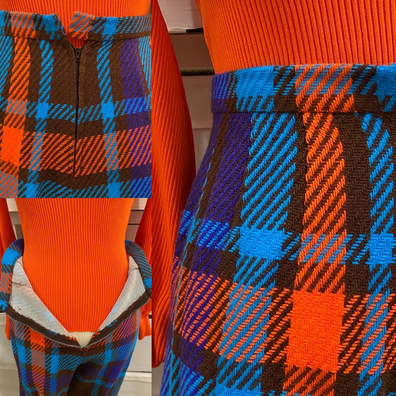 60s-70s plaid pants. High rise, center zipper fly, bootcut style.