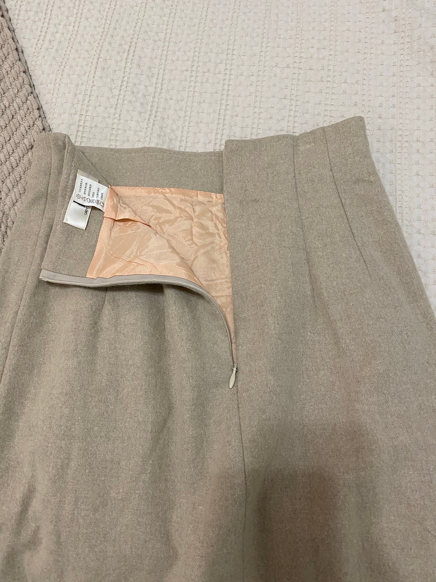 Beautiful, semi-high waisted vintage skirt from an Asian brand. Feels like a wool blend, however it's fully lined inside.
