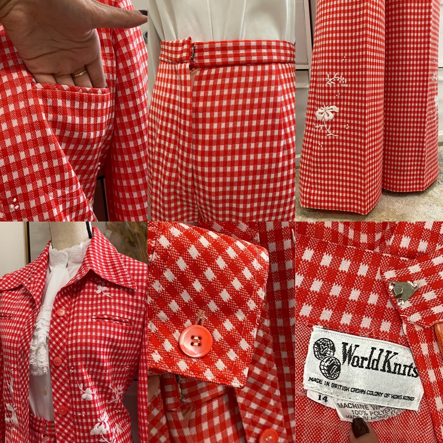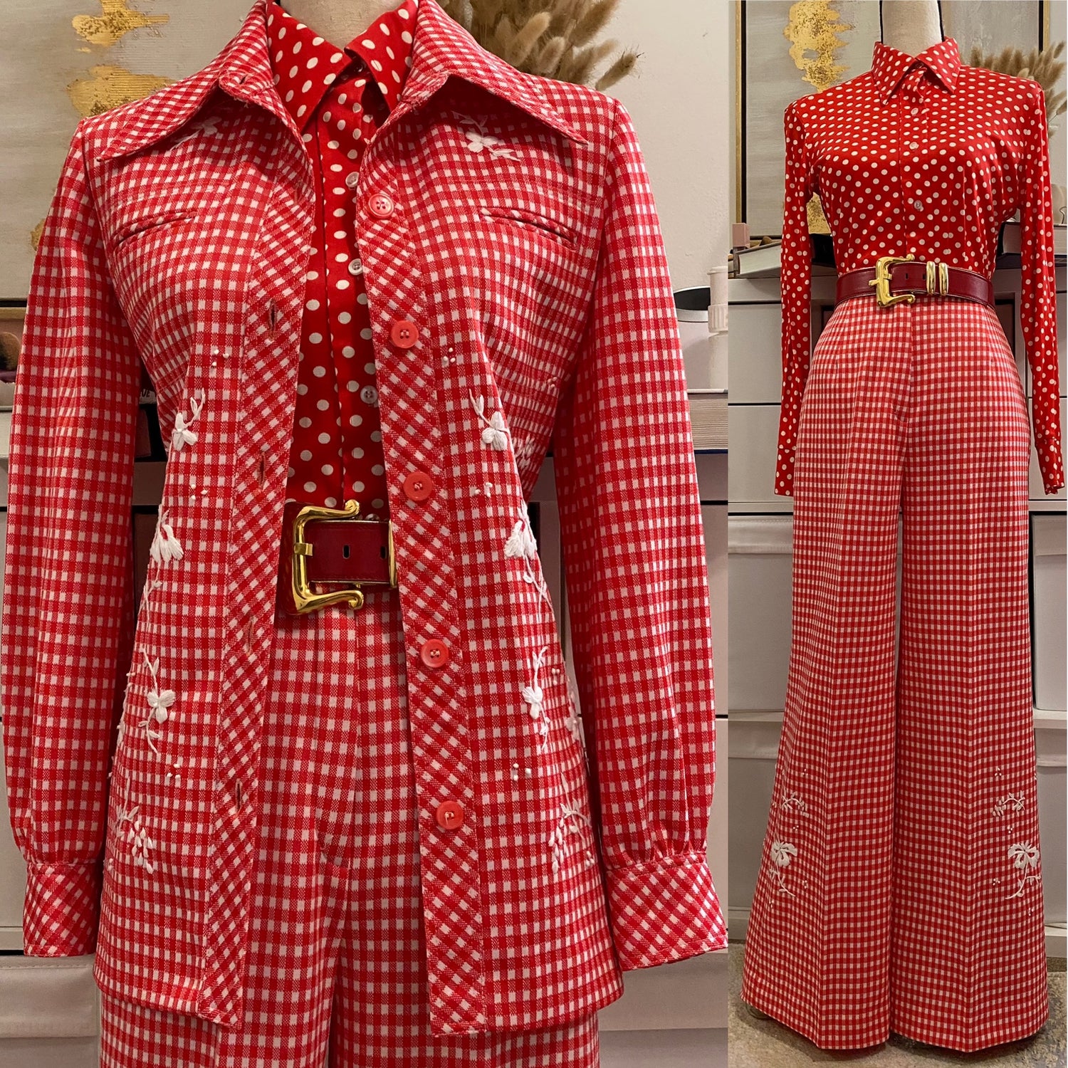 70's Floral Gingham Wide Leg 2pc Pantsuit (S-M)